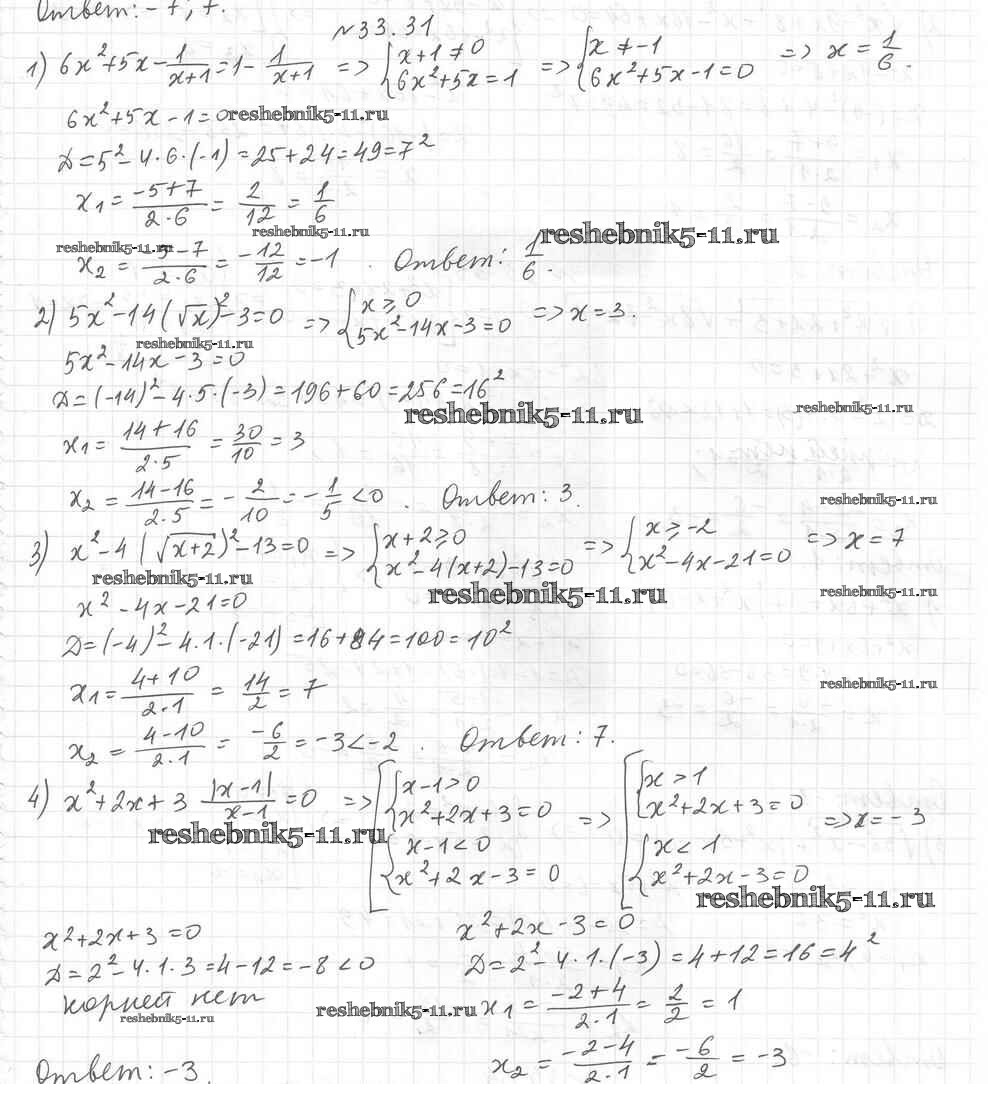 Готовая домашняя работа с ответами по Алгебре за 8 класс Мерзляк, Поляков Учебник Алгоритм успеха Углубленный уровень Вентана-граф 2020 ФГОС - §33. Формула корней квадратного уравнения 31