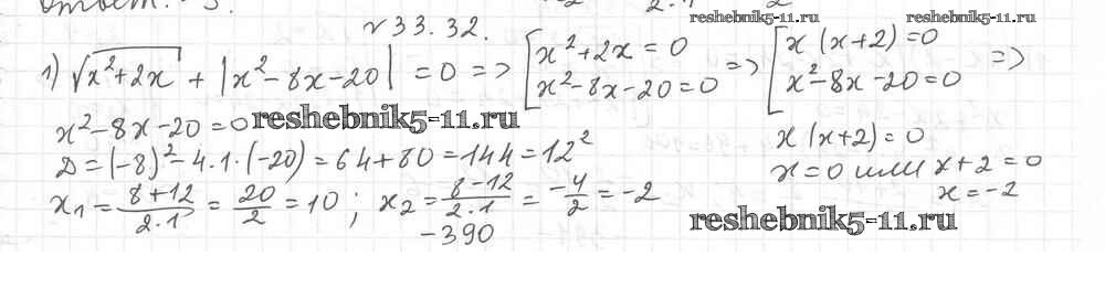 Готовая домашняя работа с ответами по Алгебре за 8 класс Мерзляк, Поляков Учебник Алгоритм успеха Углубленный уровень Вентана-граф 2020 ФГОС - §33. Формула корней квадратного уравнения 32
