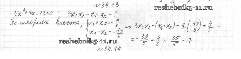 Готовая домашняя работа с ответами по Алгебре за 8 класс Мерзляк, Поляков Учебник Алгоритм успеха Углубленный уровень Вентана-граф 2020 ФГОС - §34. Теорема Виета 13