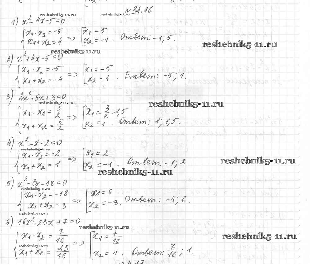 Готовая домашняя работа с ответами по Алгебре за 8 класс Мерзляк, Поляков Учебник Алгоритм успеха Углубленный уровень Вентана-граф 2020 ФГОС - §34. Теорема Виета 16