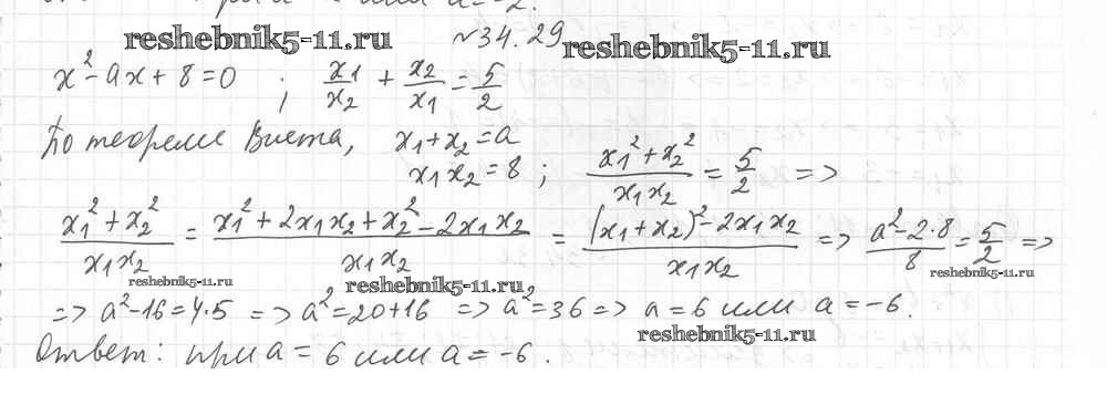 Готовая домашняя работа с ответами по Алгебре за 8 класс Мерзляк, Поляков Учебник Алгоритм успеха Углубленный уровень Вентана-граф 2020 ФГОС - §34. Теорема Виета 29
