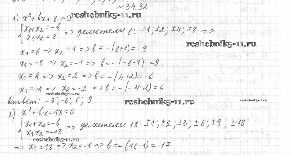 Готовая домашняя работа с ответами по Алгебре за 8 класс Мерзляк, Поляков Учебник Алгоритм успеха Углубленный уровень Вентана-граф 2020 ФГОС - §34. Теорема Виета 32