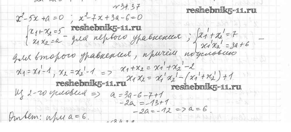 Готовая домашняя работа с ответами по Алгебре за 8 класс Мерзляк, Поляков Учебник Алгоритм успеха Углубленный уровень Вентана-граф 2020 ФГОС - §34. Теорема Виета 37