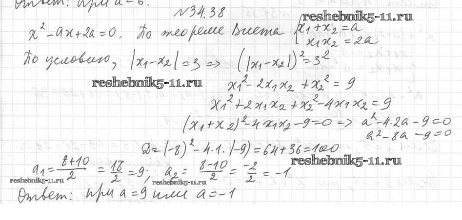 Готовая домашняя работа с ответами по Алгебре за 8 класс Мерзляк, Поляков Учебник Алгоритм успеха Углубленный уровень Вентана-граф 2020 ФГОС - §34. Теорема Виета 38