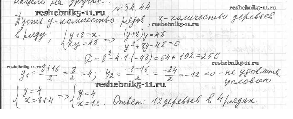 Готовая домашняя работа с ответами по Алгебре за 8 класс Мерзляк, Поляков Учебник Алгоритм успеха Углубленный уровень Вентана-граф 2020 ФГОС - §34. Теорема Виета 44