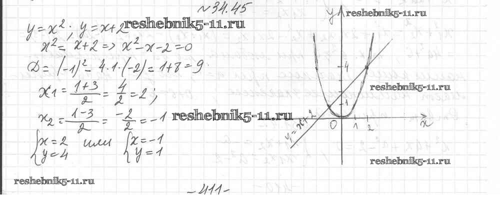 Готовая домашняя работа с ответами по Алгебре за 8 класс Мерзляк, Поляков Учебник Алгоритм успеха Углубленный уровень Вентана-граф 2020 ФГОС - §34. Теорема Виета 45