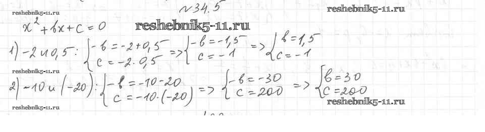 Готовая домашняя работа с ответами по Алгебре за 8 класс Мерзляк, Поляков Учебник Алгоритм успеха Углубленный уровень Вентана-граф 2020 ФГОС - §34. Теорема Виета 5