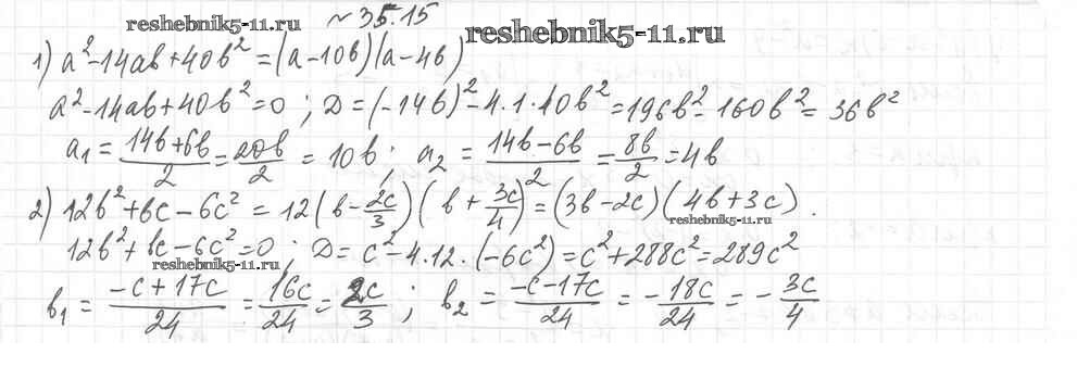 Готовая домашняя работа с ответами по Алгебре за 8 класс Мерзляк, Поляков Учебник Алгоритм успеха Углубленный уровень Вентана-граф 2020 ФГОС - §35. Квадратный трехчлен 15