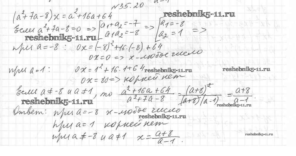 Готовая домашняя работа с ответами по Алгебре за 8 класс Мерзляк, Поляков Учебник Алгоритм успеха Углубленный уровень Вентана-граф 2020 ФГОС - §35. Квадратный трехчлен 20