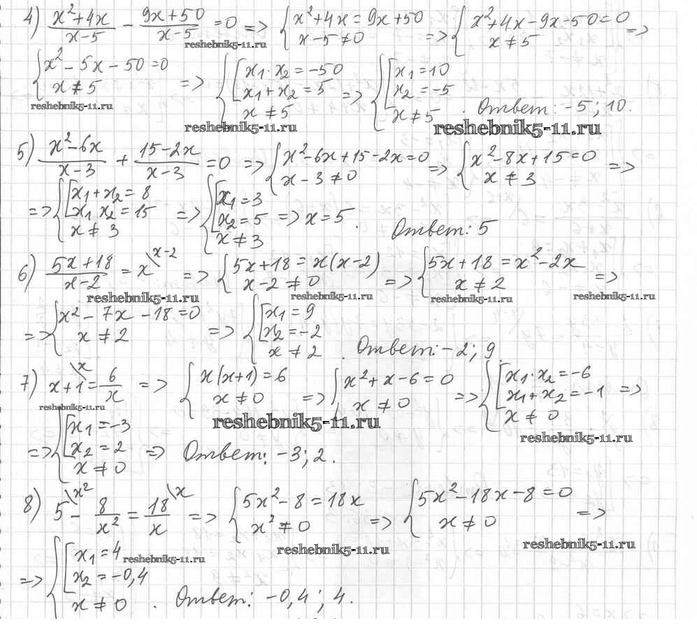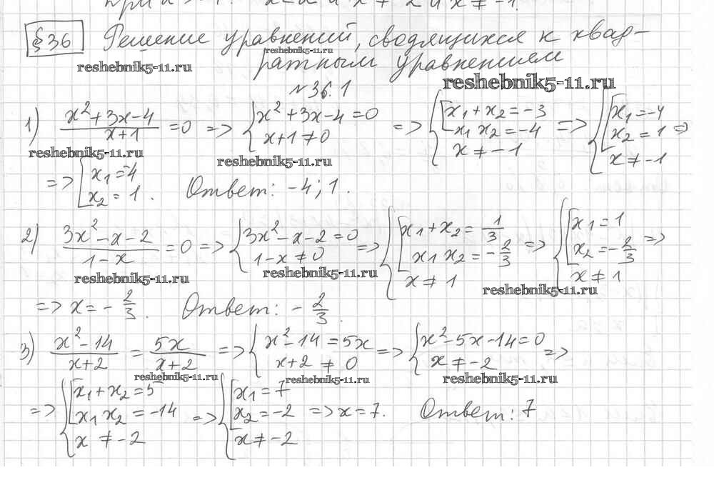 Готовая домашняя работа с ответами по Алгебре за 8 класс Мерзляк, Поляков Учебник Алгоритм успеха Углубленный уровень Вентана-граф 2020 ФГОС - §36. Решение уравнений, сводящихся к квадратным уравнениям 1