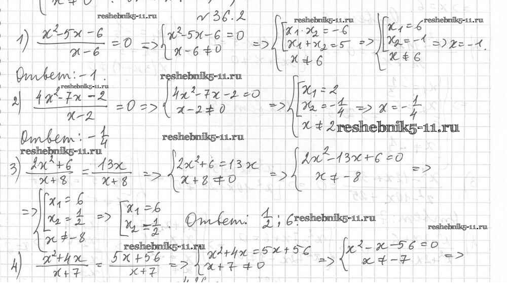 Готовая домашняя работа с ответами по Алгебре за 8 класс Мерзляк, Поляков Учебник Алгоритм успеха Углубленный уровень Вентана-граф 2020 ФГОС - §36. Решение уравнений, сводящихся к квадратным уравнениям 2