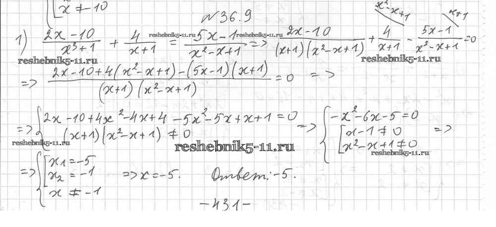 Готовая домашняя работа с ответами по Алгебре за 8 класс Мерзляк, Поляков Учебник Алгоритм успеха Углубленный уровень Вентана-граф 2020 ФГОС - §36. Решение уравнений, сводящихся к квадратным уравнениям 9