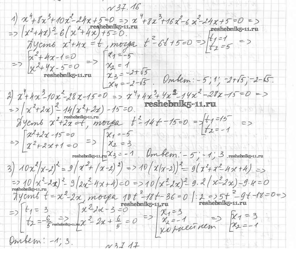 Готовая домашняя работа с ответами по Алгебре за 8 класс Мерзляк, Поляков Учебник Алгоритм успеха Углубленный уровень Вентана-граф 2020 ФГОС - §37. Решение уравнений методом замены переменной 16