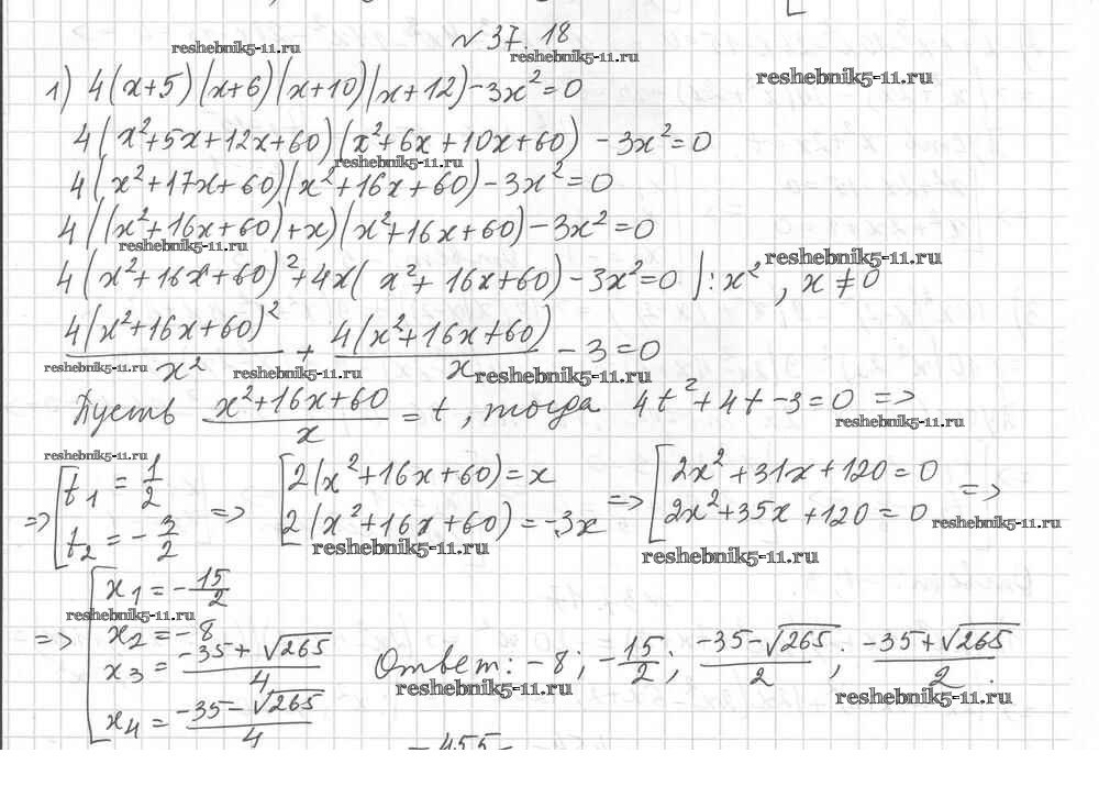 Готовая домашняя работа с ответами по Алгебре за 8 класс Мерзляк, Поляков Учебник Алгоритм успеха Углубленный уровень Вентана-граф 2020 ФГОС - §37. Решение уравнений методом замены переменной 18