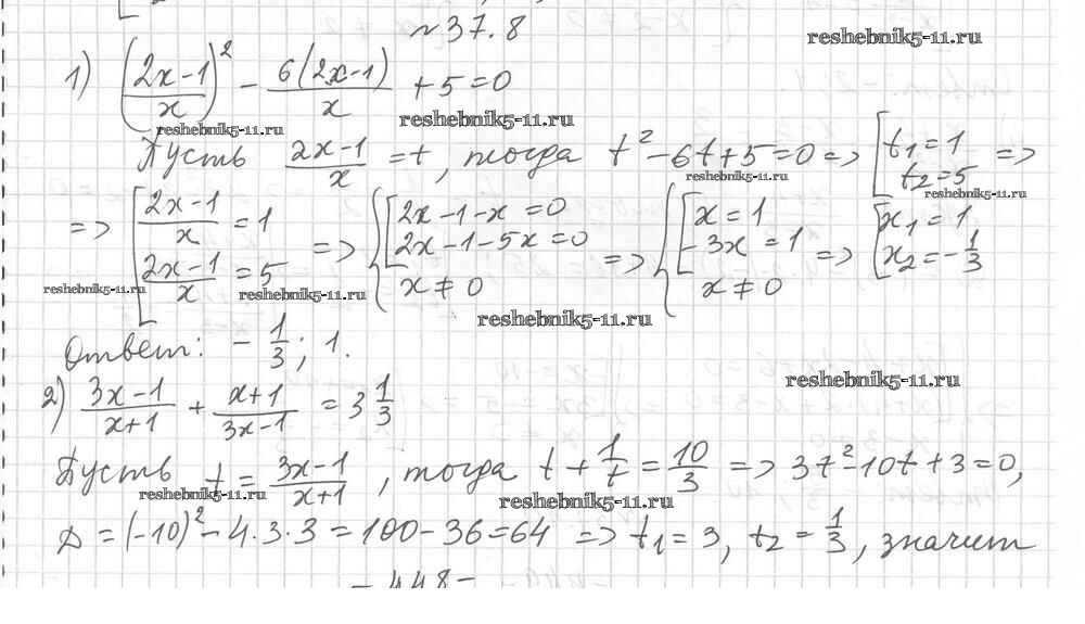 Готовая домашняя работа с ответами по Алгебре за 8 класс Мерзляк, Поляков Учебник Алгоритм успеха Углубленный уровень Вентана-граф 2020 ФГОС - §37. Решение уравнений методом замены переменной 8