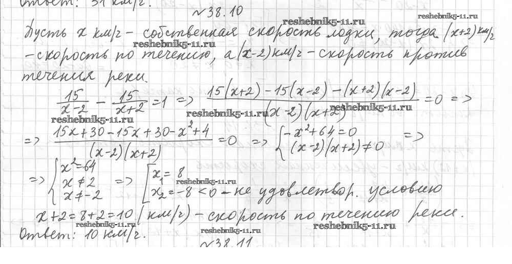 Готовая домашняя работа с ответами по Алгебре за 8 класс Мерзляк, Поляков Учебник Алгоритм успеха Углубленный уровень Вентана-граф 2020 ФГОС - §38. Рациональные уравнения как математические модели реальных ситуаций 10