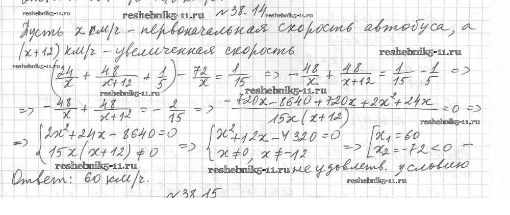 Готовая домашняя работа с ответами по Алгебре за 8 класс Мерзляк, Поляков Учебник Алгоритм успеха Углубленный уровень Вентана-граф 2020 ФГОС - §38. Рациональные уравнения как математические модели реальных ситуаций 14