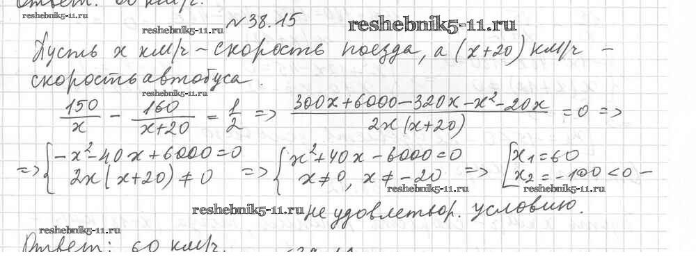 Готовая домашняя работа с ответами по Алгебре за 8 класс Мерзляк, Поляков Учебник Алгоритм успеха Углубленный уровень Вентана-граф 2020 ФГОС - §38. Рациональные уравнения как математические модели реальных ситуаций 15