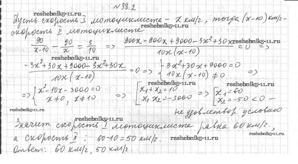 Готовая домашняя работа с ответами по Алгебре за 8 класс Мерзляк, Поляков Учебник Алгоритм успеха Углубленный уровень Вентана-граф 2020 ФГОС - §38. Рациональные уравнения как математические модели реальных ситуаций 2