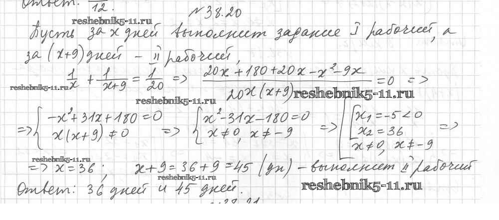 Готовая домашняя работа с ответами по Алгебре за 8 класс Мерзляк, Поляков Учебник Алгоритм успеха Углубленный уровень Вентана-граф 2020 ФГОС - §38. Рациональные уравнения как математические модели реальных ситуаций 20