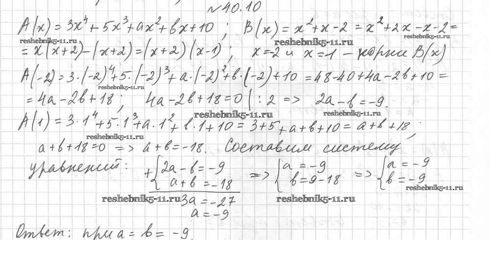 Готовая домашняя работа с ответами по Алгебре за 8 класс Мерзляк, Поляков Учебник Алгоритм успеха Углубленный уровень Вентана-граф 2020 ФГОС - §40. Корни многочлена 10