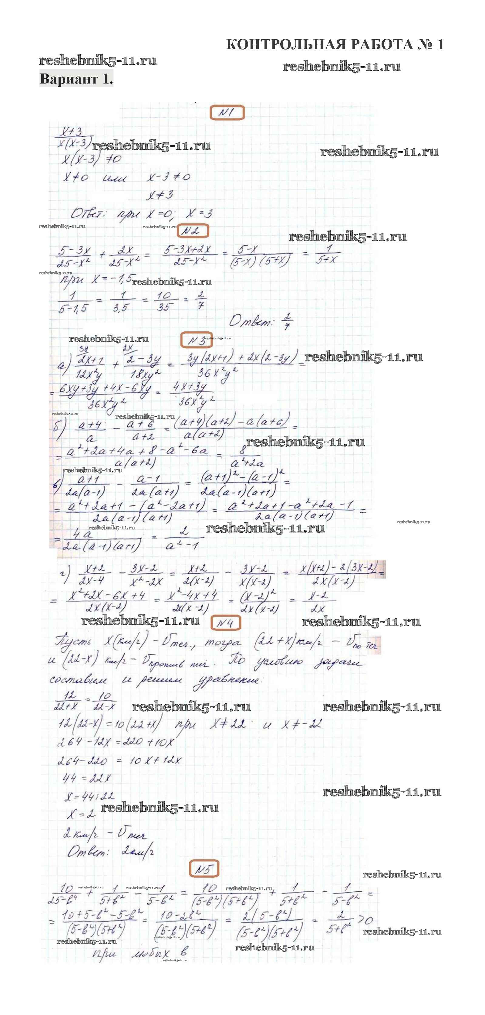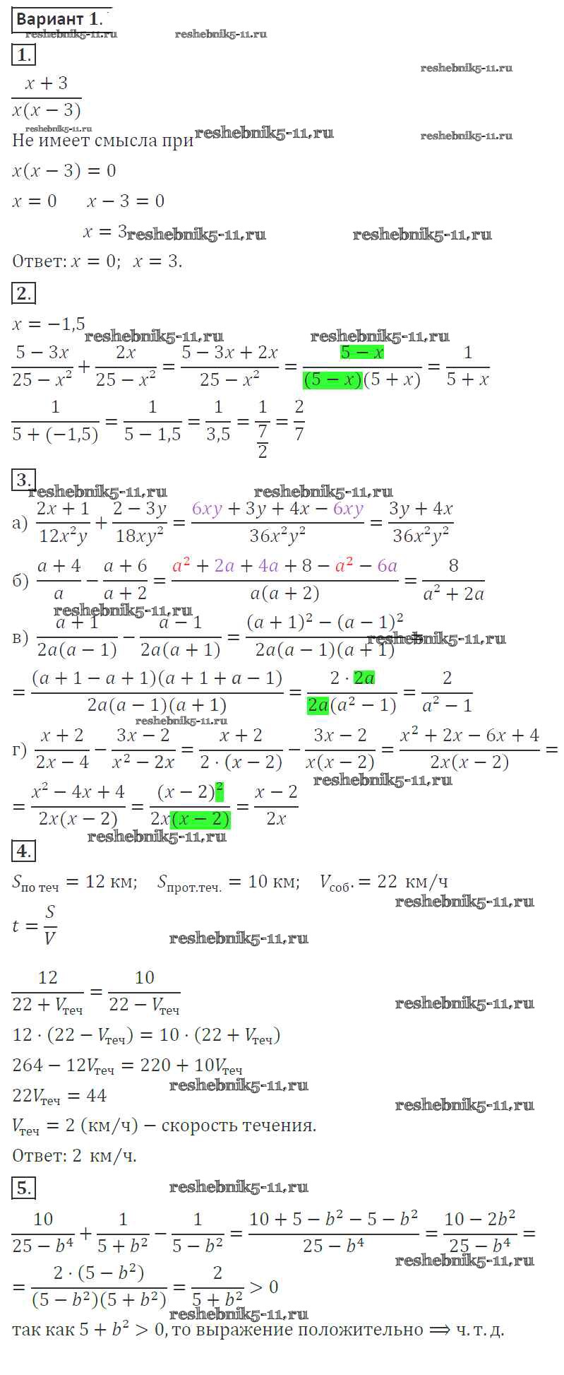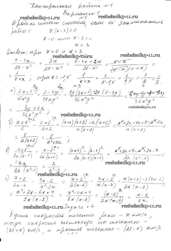 Готовая домашняя работа с ответами по Алгебре за 8 класс Александрова Контрольные работы УМК Базовый уровень Мнемозина 2016 ФГОС - КР-1. Варианты 1