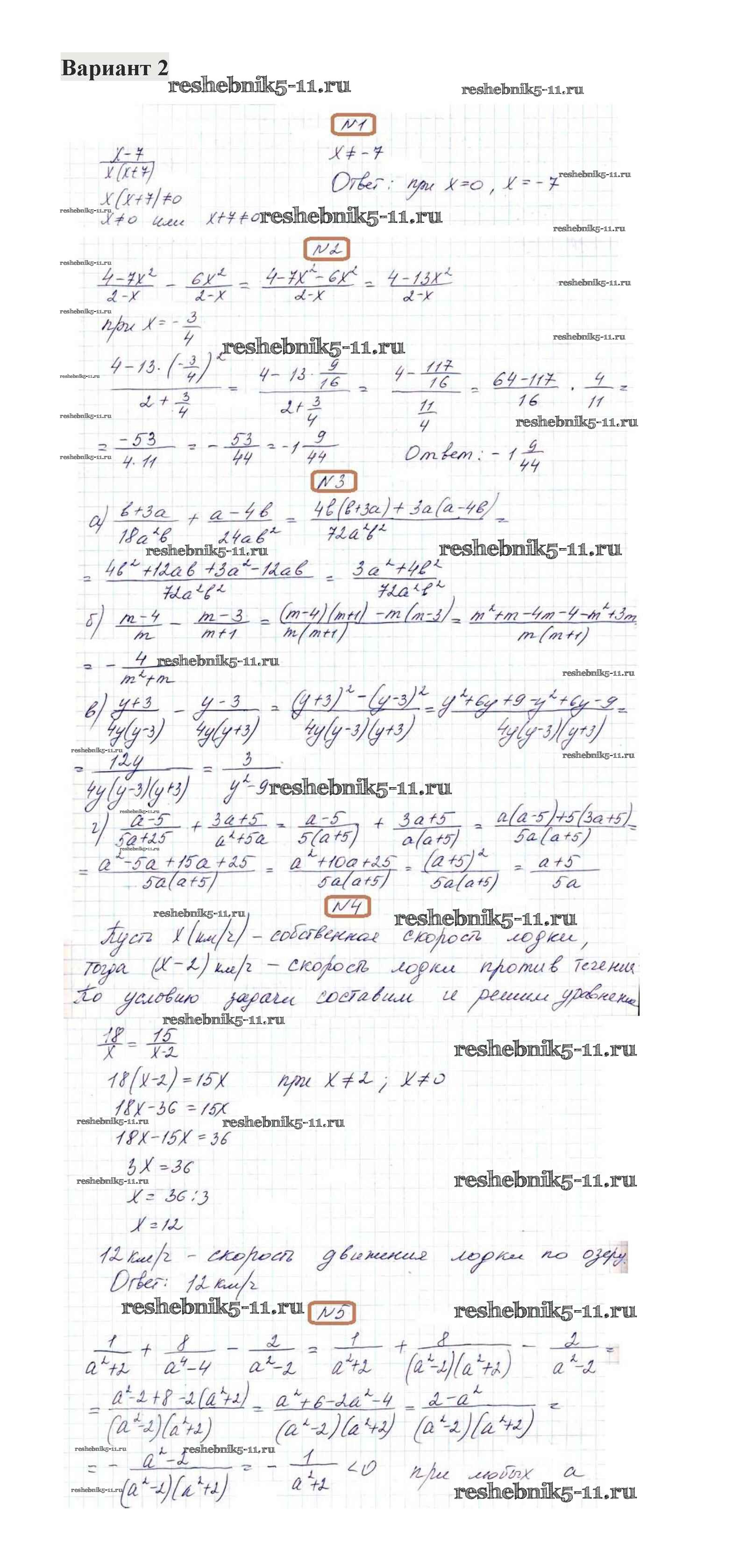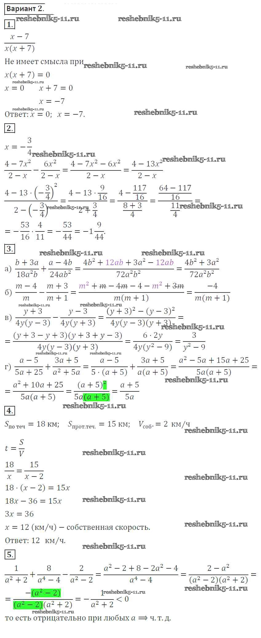 Готовая домашняя работа с ответами по Алгебре за 8 класс Александрова Контрольные работы УМК Базовый уровень Мнемозина 2016 ФГОС - КР-1. Варианты 2