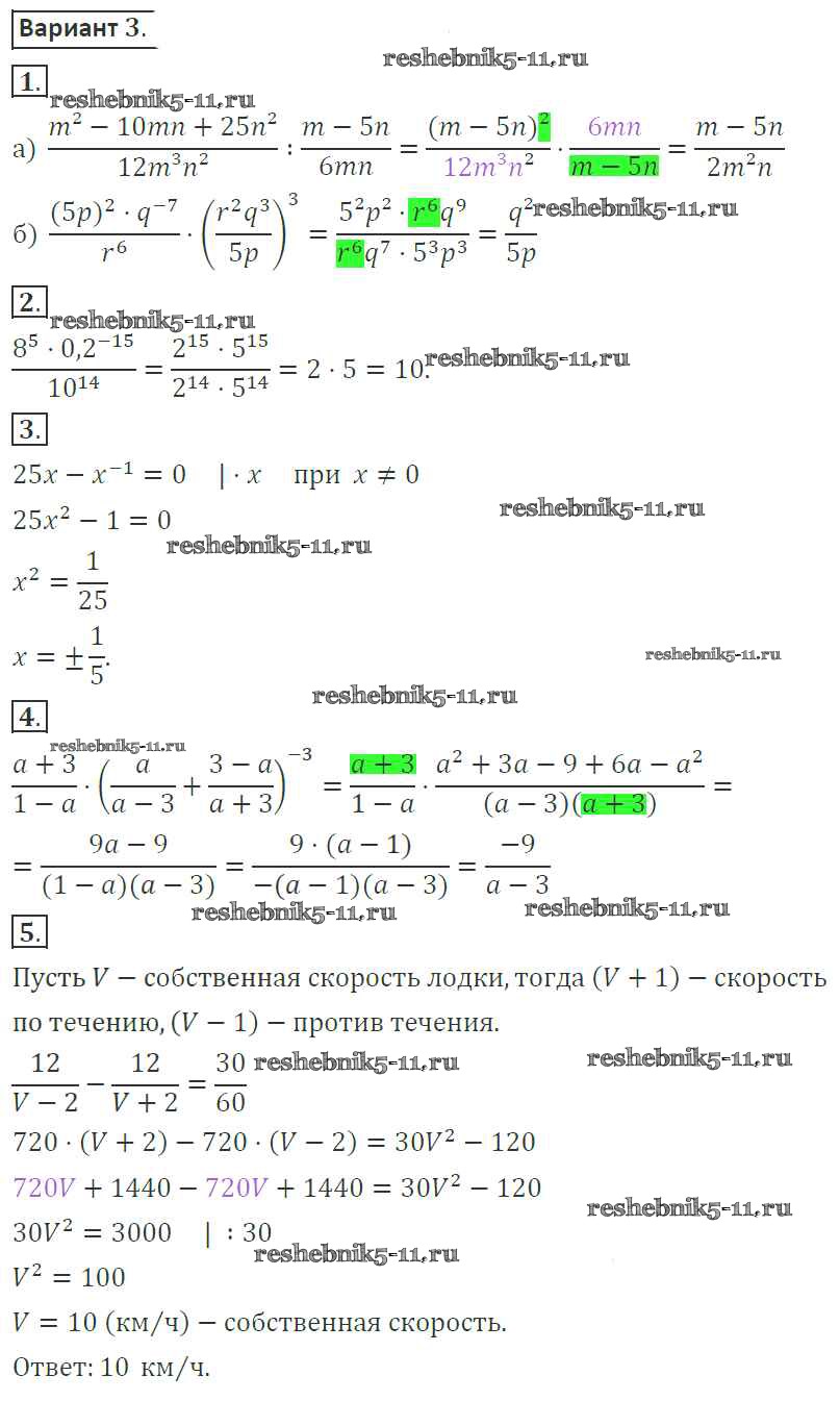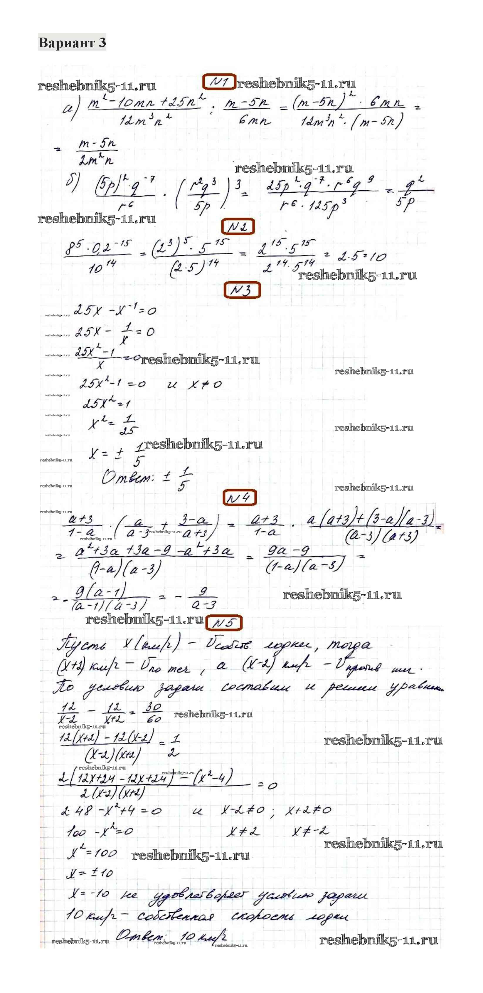 Готовая домашняя работа с ответами по Алгебре за 8 класс Александрова Контрольные работы УМК Базовый уровень Мнемозина 2016 ФГОС - КР-2. Варианты 3