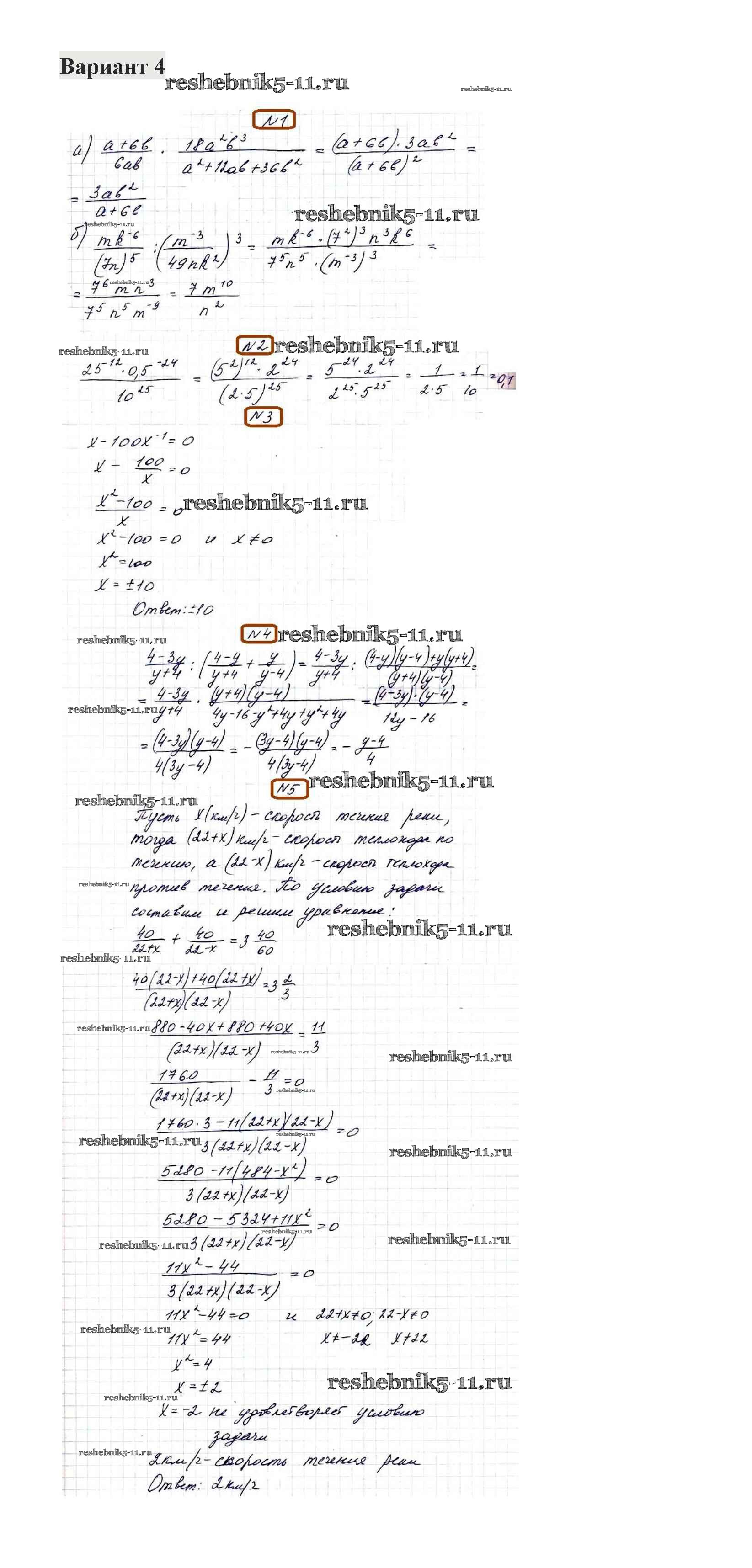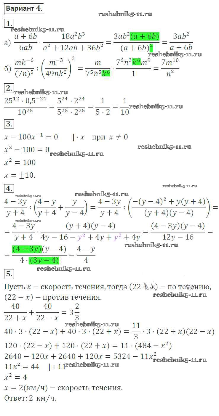 Готовая домашняя работа с ответами по Алгебре за 8 класс Александрова Контрольные работы УМК Базовый уровень Мнемозина 2016 ФГОС - КР-2. Варианты 4