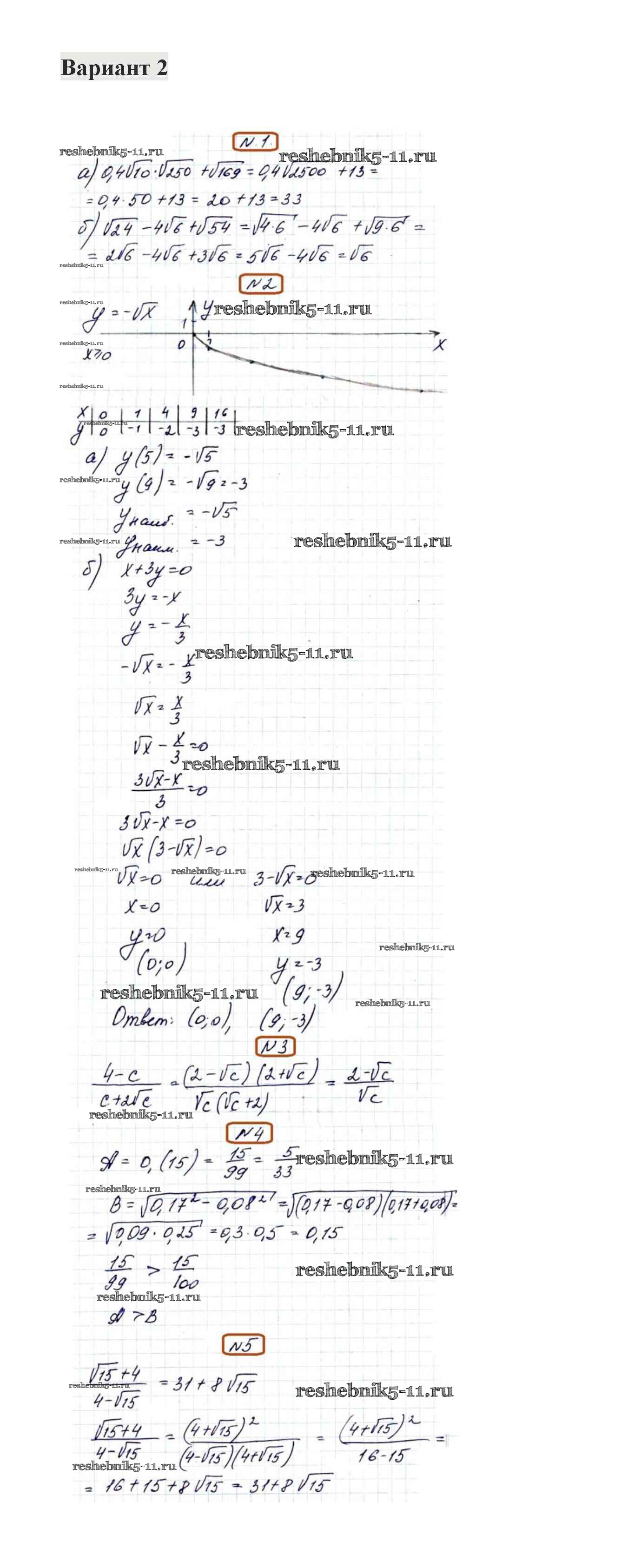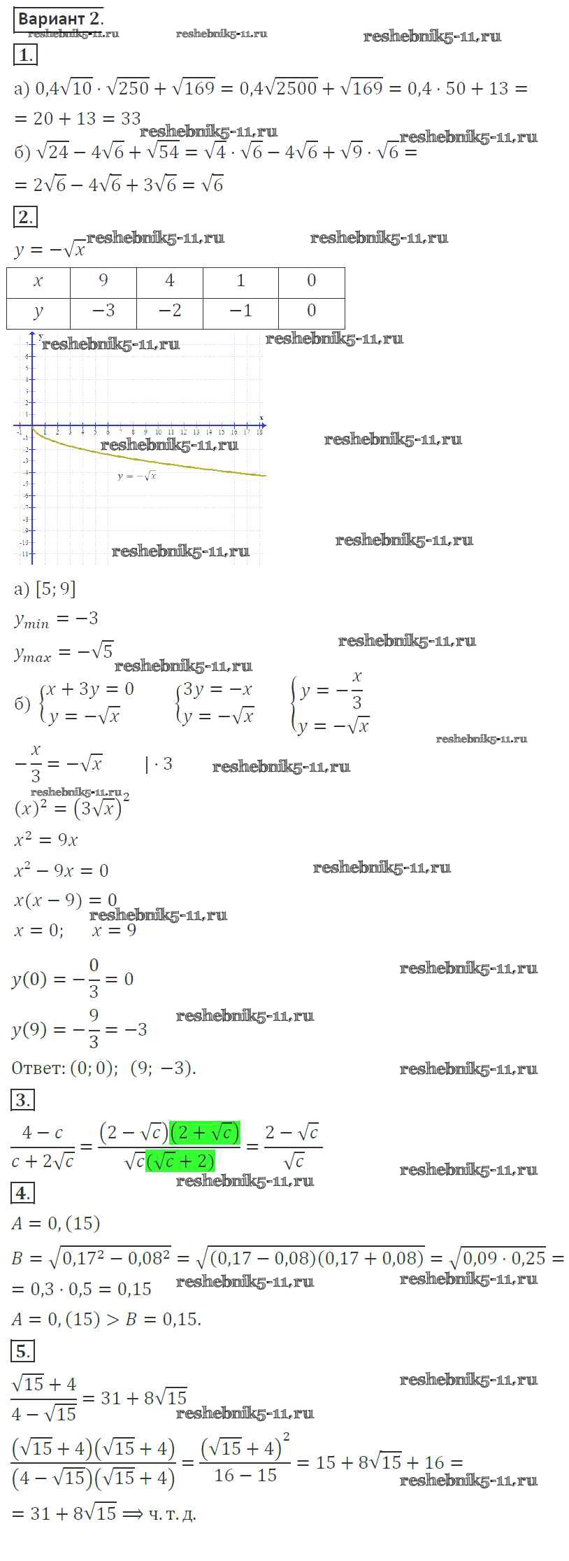 Готовая домашняя работа с ответами по Алгебре за 8 класс Александрова Контрольные работы УМК Базовый уровень Мнемозина 2016 ФГОС - КР-3. Варианты 2