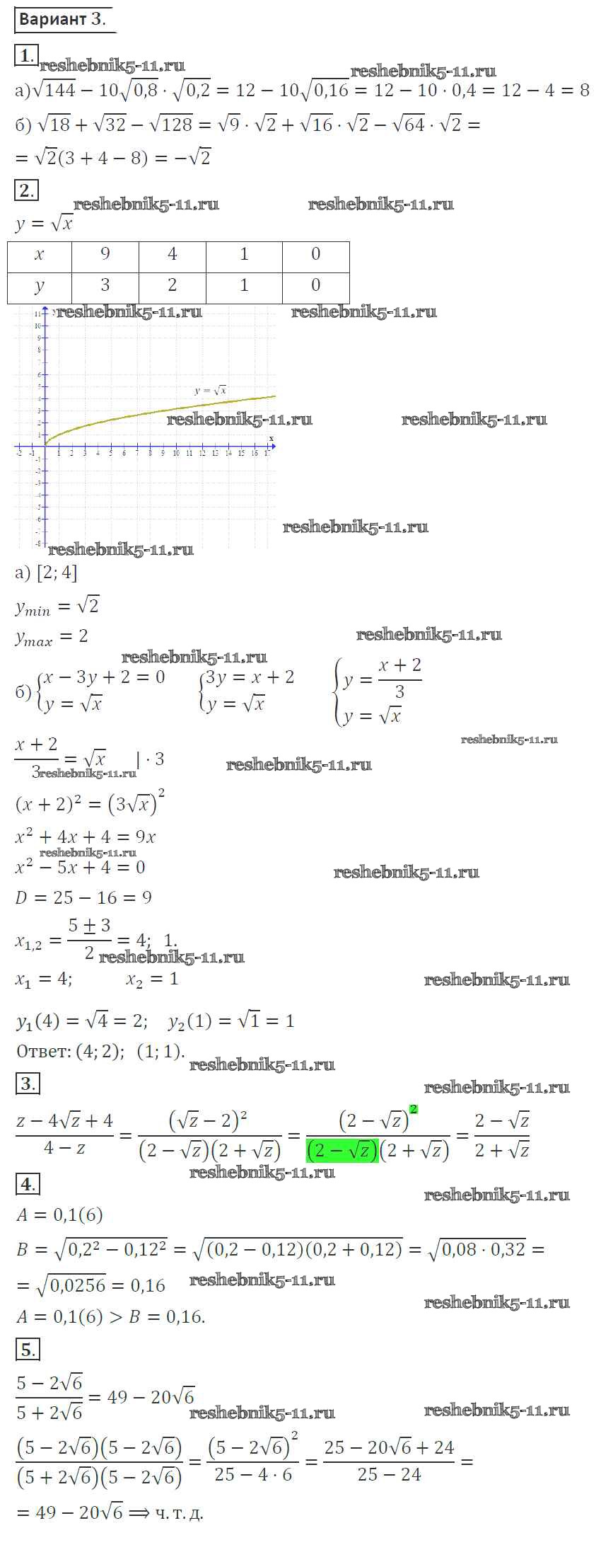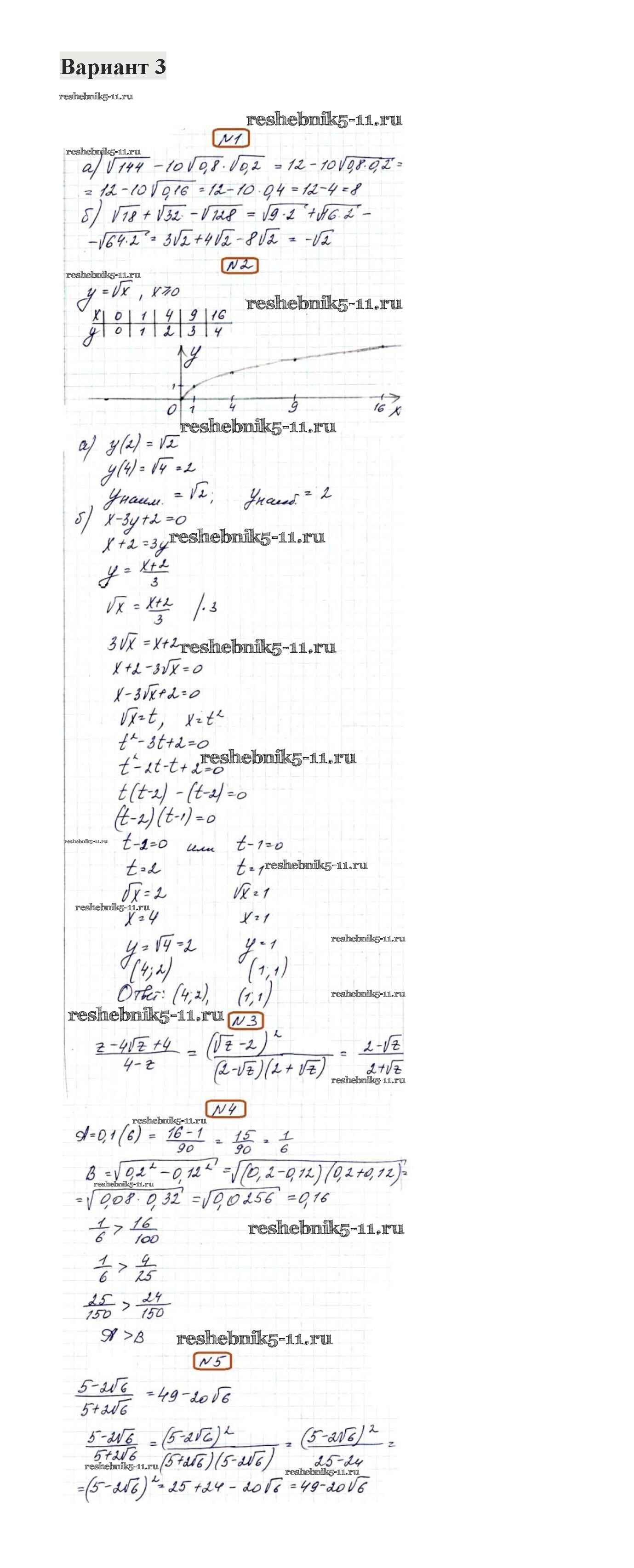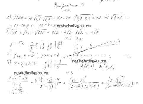 Готовая домашняя работа с ответами по Алгебре за 8 класс Александрова Контрольные работы УМК Базовый уровень Мнемозина 2016 ФГОС - КР-3. Варианты 3