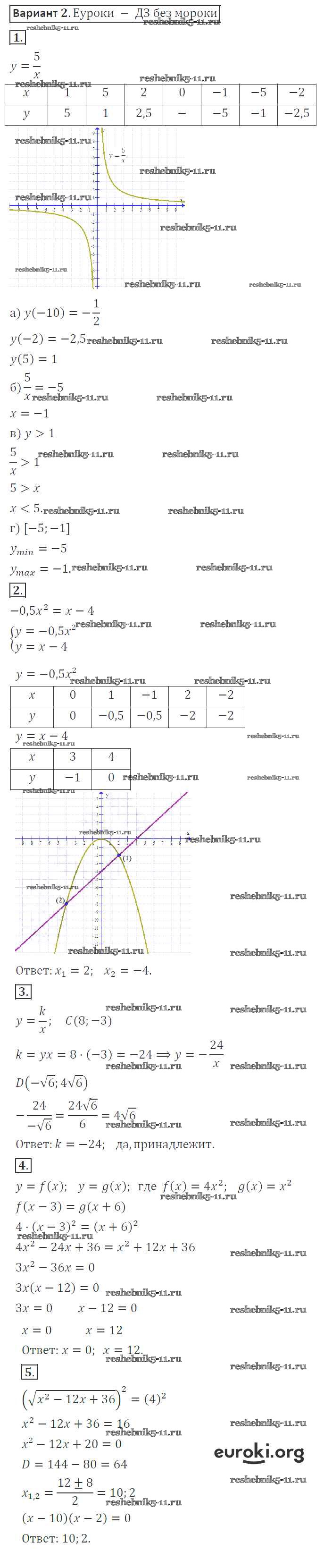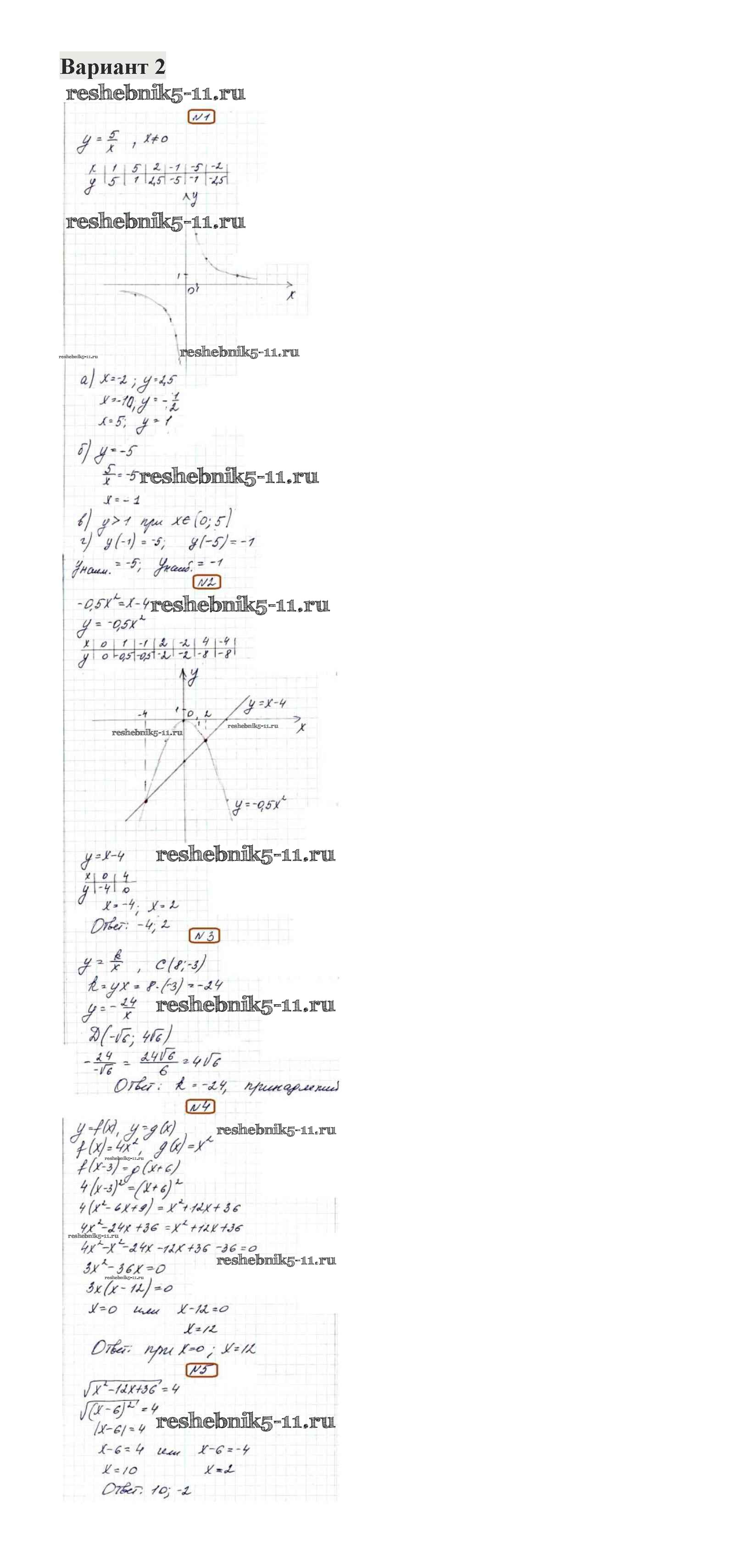 Готовая домашняя работа с ответами по Алгебре за 8 класс Александрова Контрольные работы УМК Базовый уровень Мнемозина 2016 ФГОС - КР-4. Варианты 2