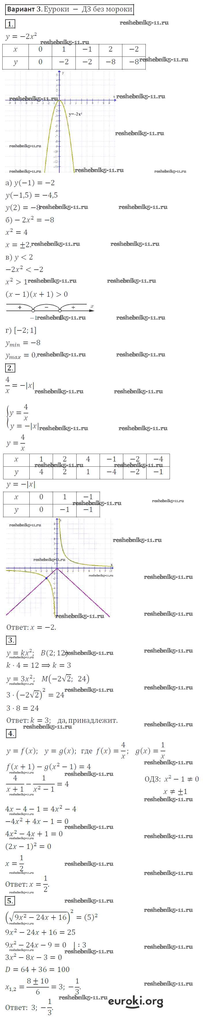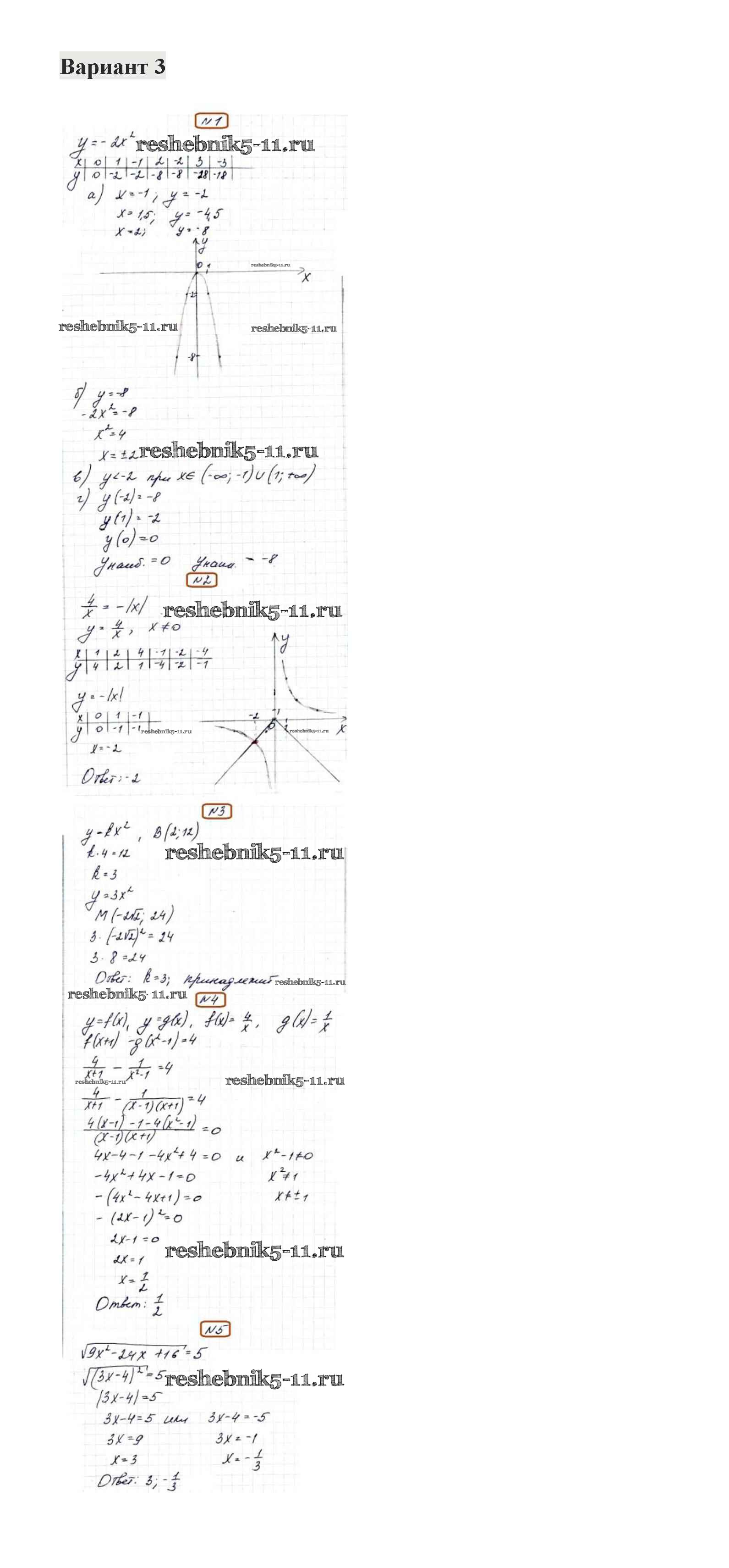 Готовая домашняя работа с ответами по Алгебре за 8 класс Александрова Контрольные работы УМК Базовый уровень Мнемозина 2016 ФГОС - КР-4. Варианты 3