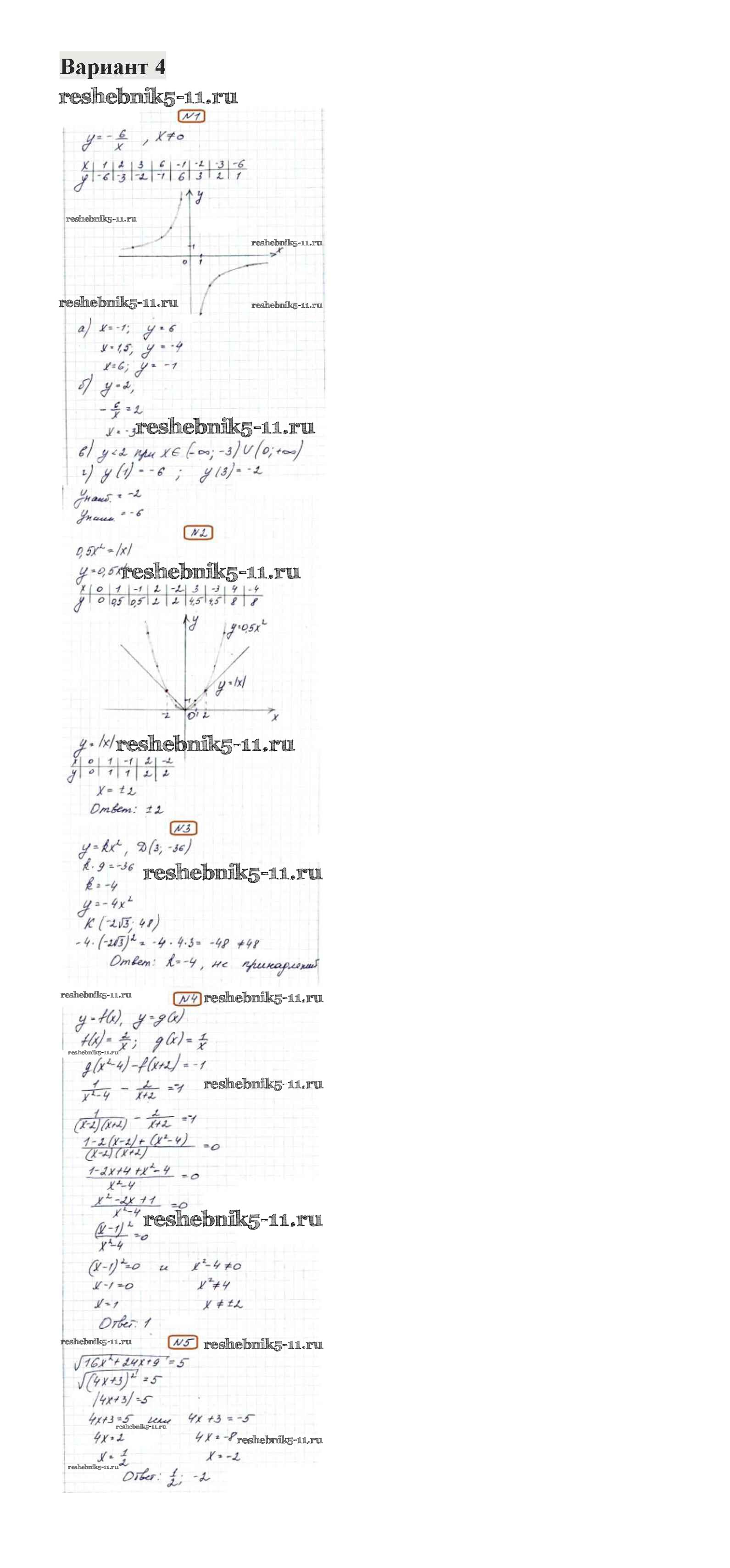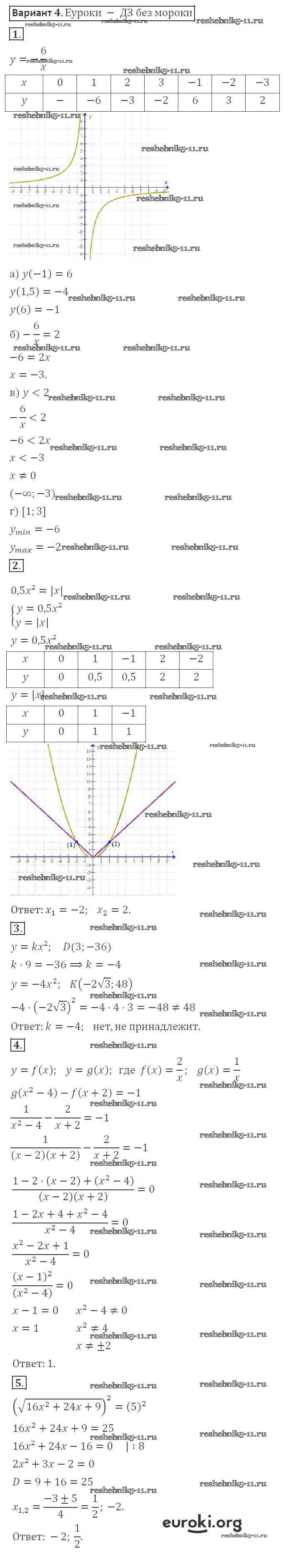 Готовая домашняя работа с ответами по Алгебре за 8 класс Александрова Контрольные работы УМК Базовый уровень Мнемозина 2016 ФГОС - КР-4. Варианты 4