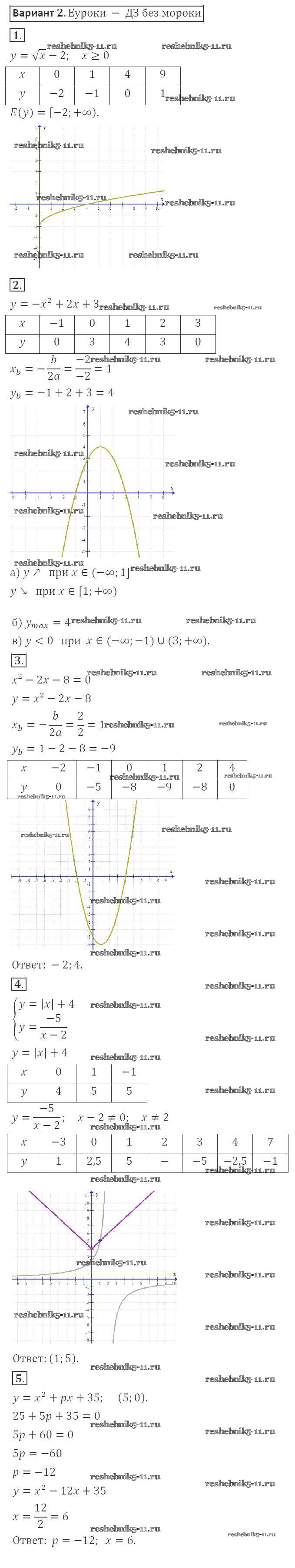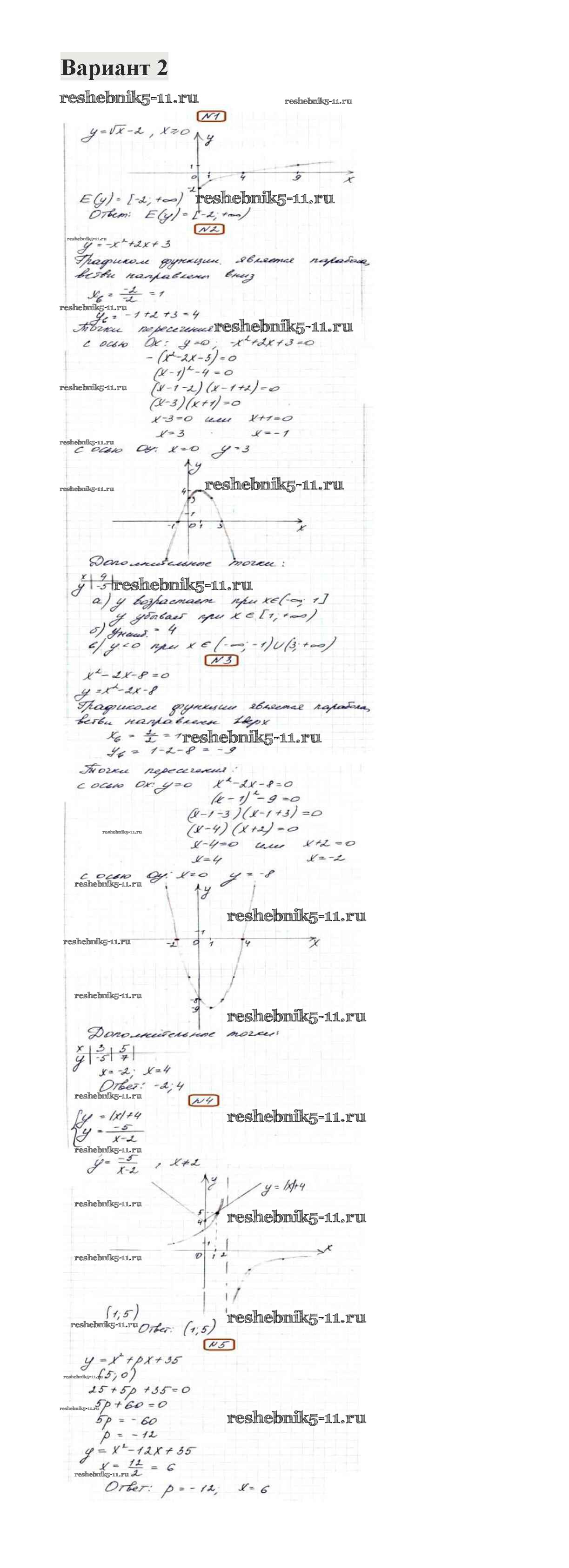 Готовая домашняя работа с ответами по Алгебре за 8 класс Александрова Контрольные работы УМК Базовый уровень Мнемозина 2016 ФГОС - КР-5. Варианты 2