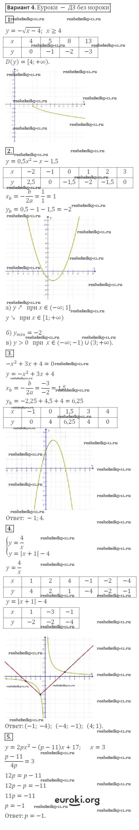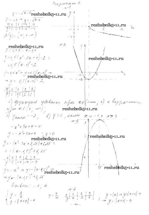 Готовая домашняя работа с ответами по Алгебре за 8 класс Александрова Контрольные работы УМК Базовый уровень Мнемозина 2016 ФГОС - КР-5. Варианты 4
