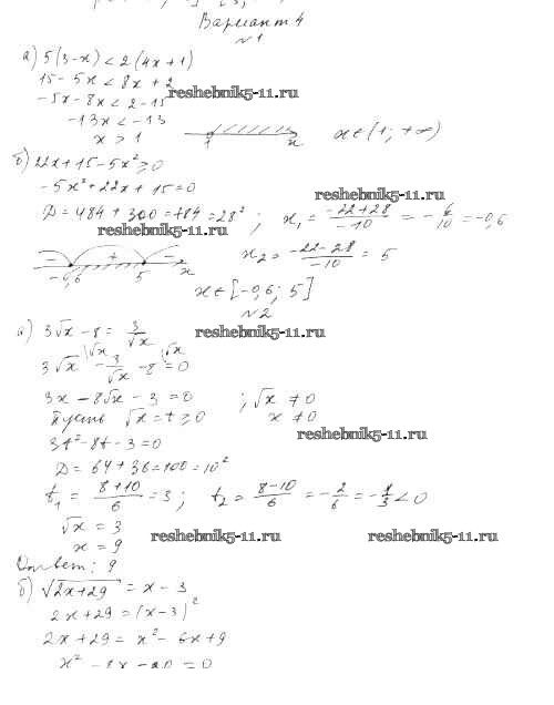 Готовая домашняя работа с ответами по Алгебре за 8 класс Александрова Контрольные работы УМК Базовый уровень Мнемозина 2016 ФГОС - КР-8. Варианты 4