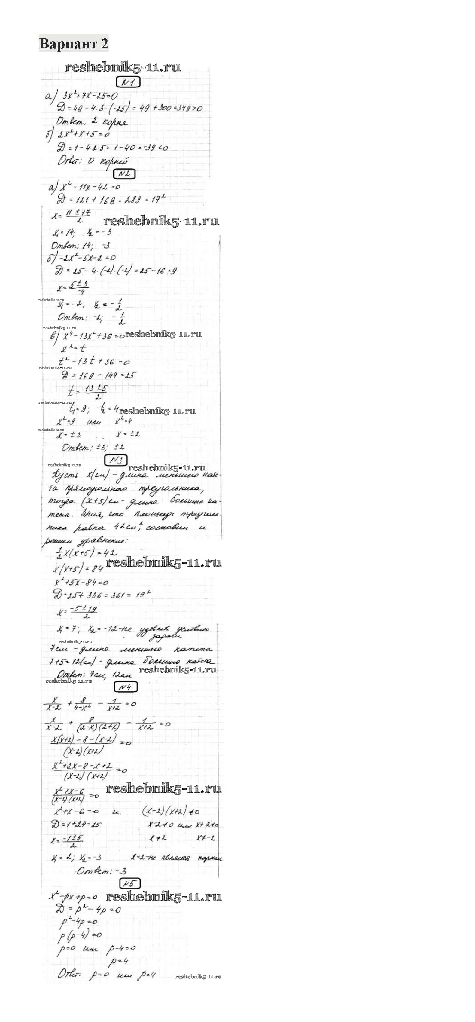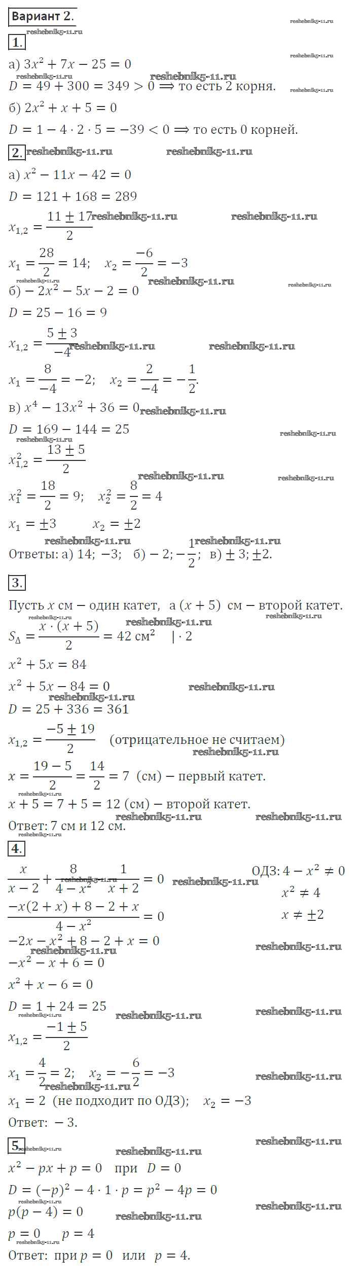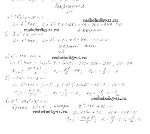 Готовая домашняя работа с ответами по Алгебре за 8 класс Александрова Контрольные работы УМК Базовый уровень Мнемозина 2016 ФГОС - КР-6. Варианты 2