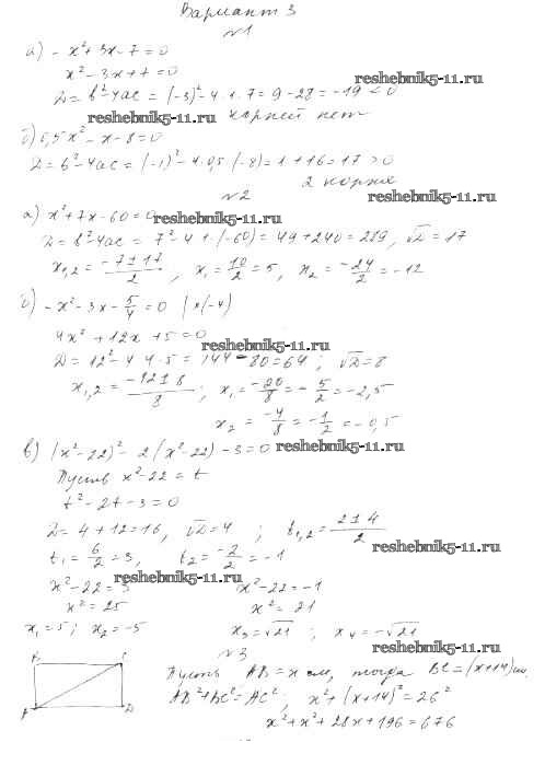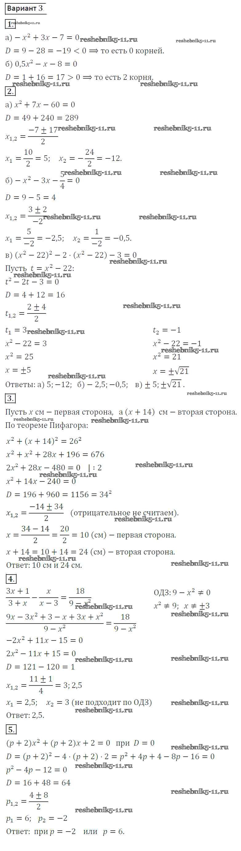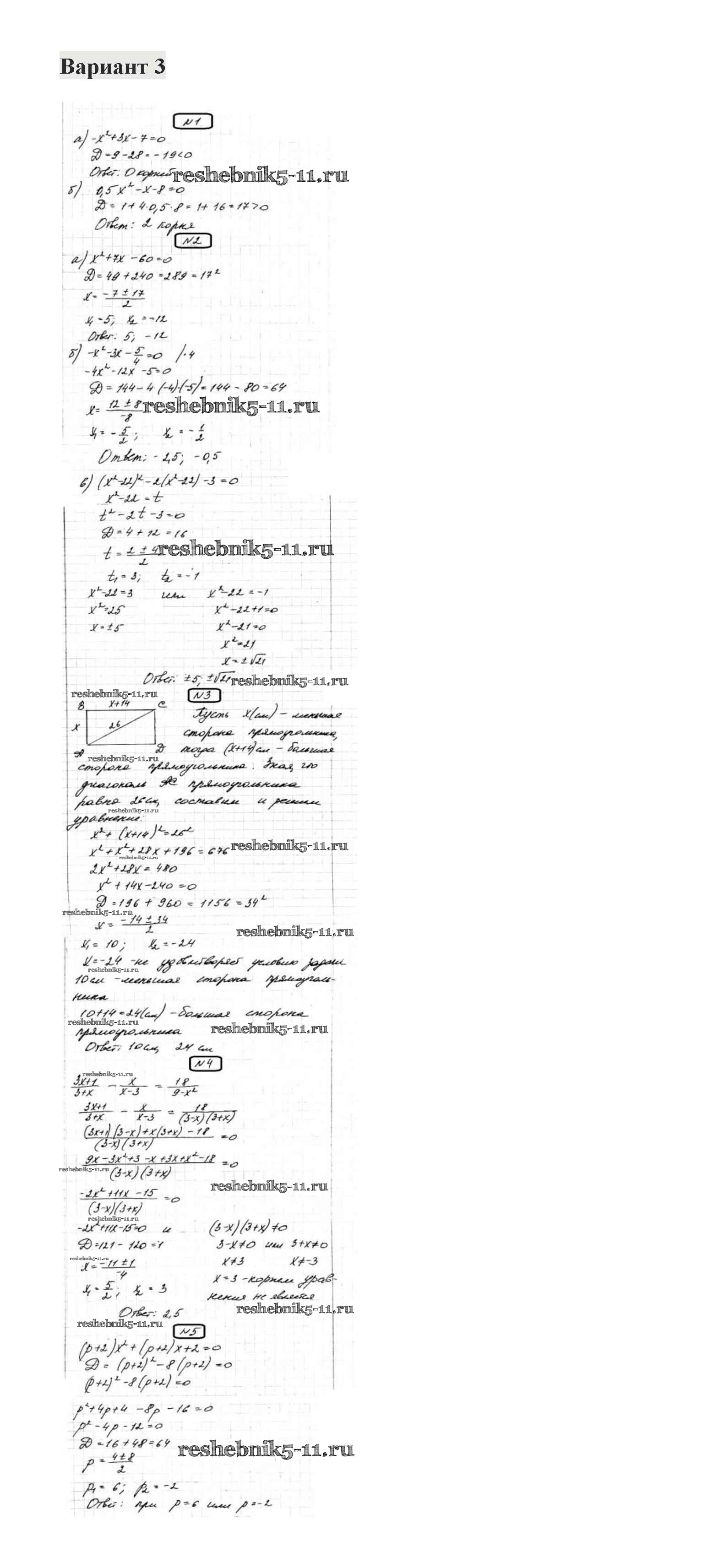 Готовая домашняя работа с ответами по Алгебре за 8 класс Александрова Контрольные работы УМК Базовый уровень Мнемозина 2016 ФГОС - КР-6. Варианты 3