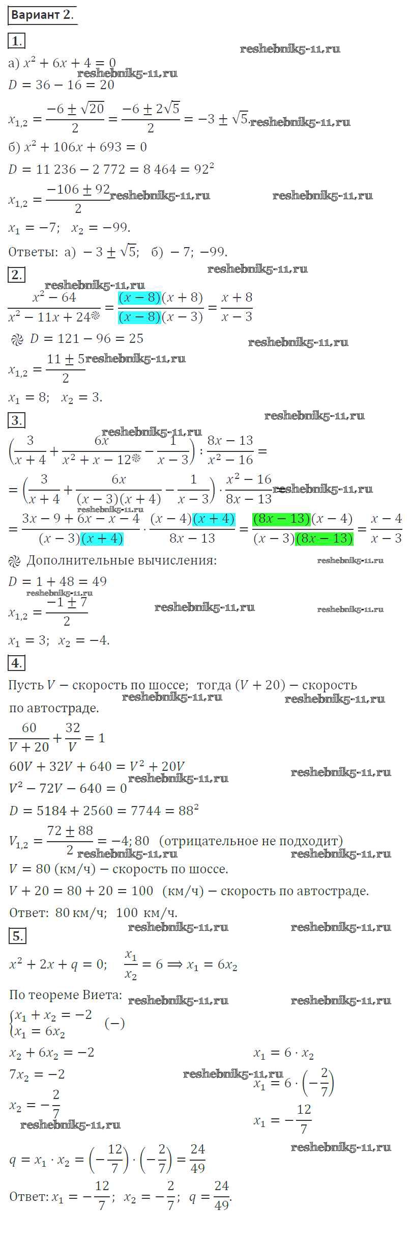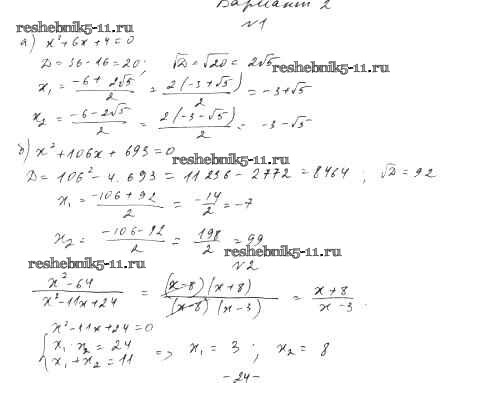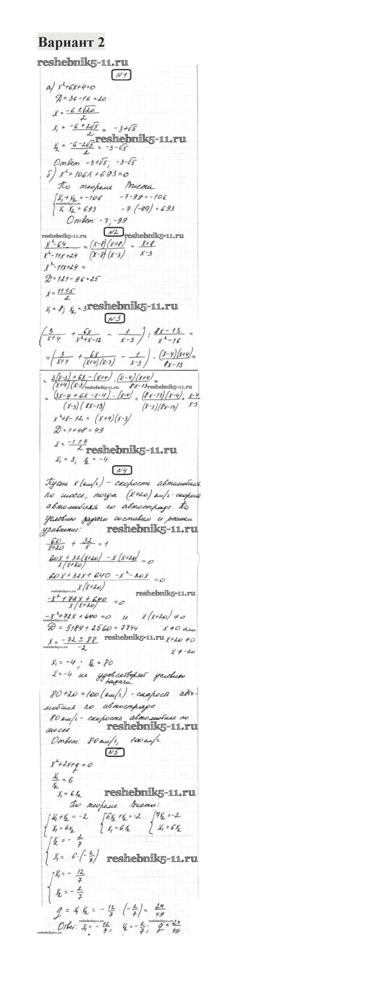Готовая домашняя работа с ответами по Алгебре за 8 класс Александрова Контрольные работы УМК Базовый уровень Мнемозина 2016 ФГОС - КР-7. Варианты 2