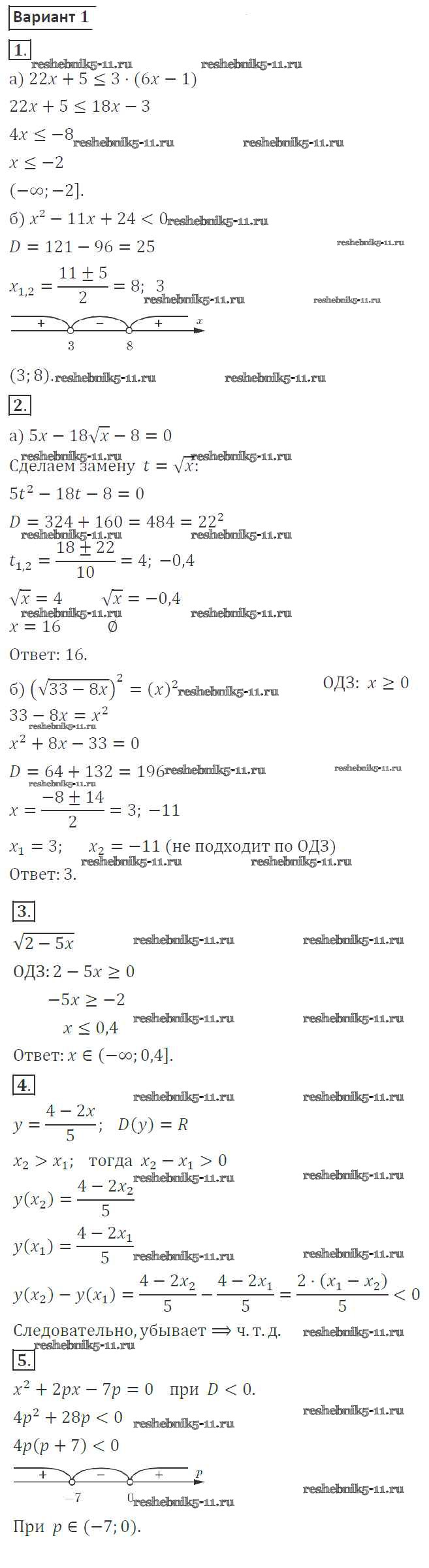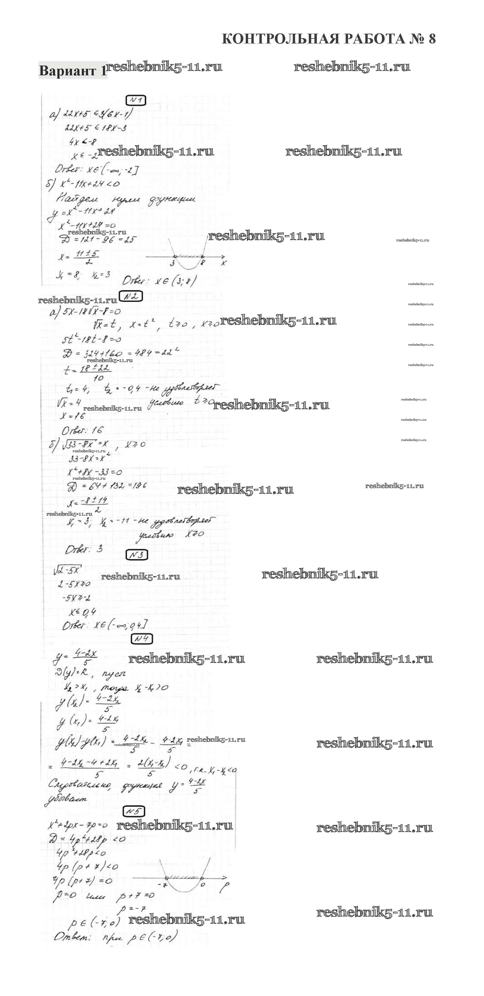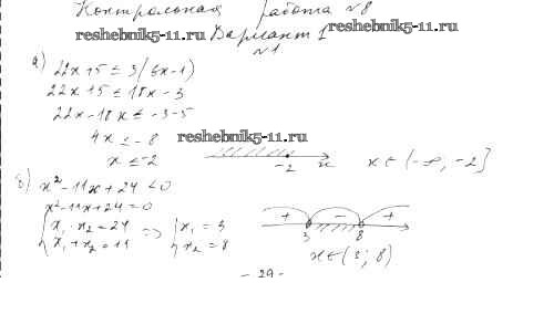 Готовая домашняя работа с ответами по Алгебре за 8 класс Александрова Контрольные работы УМК Базовый уровень Мнемозина 2016 ФГОС - КР-8. Варианты 1