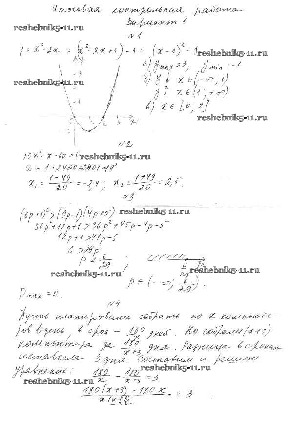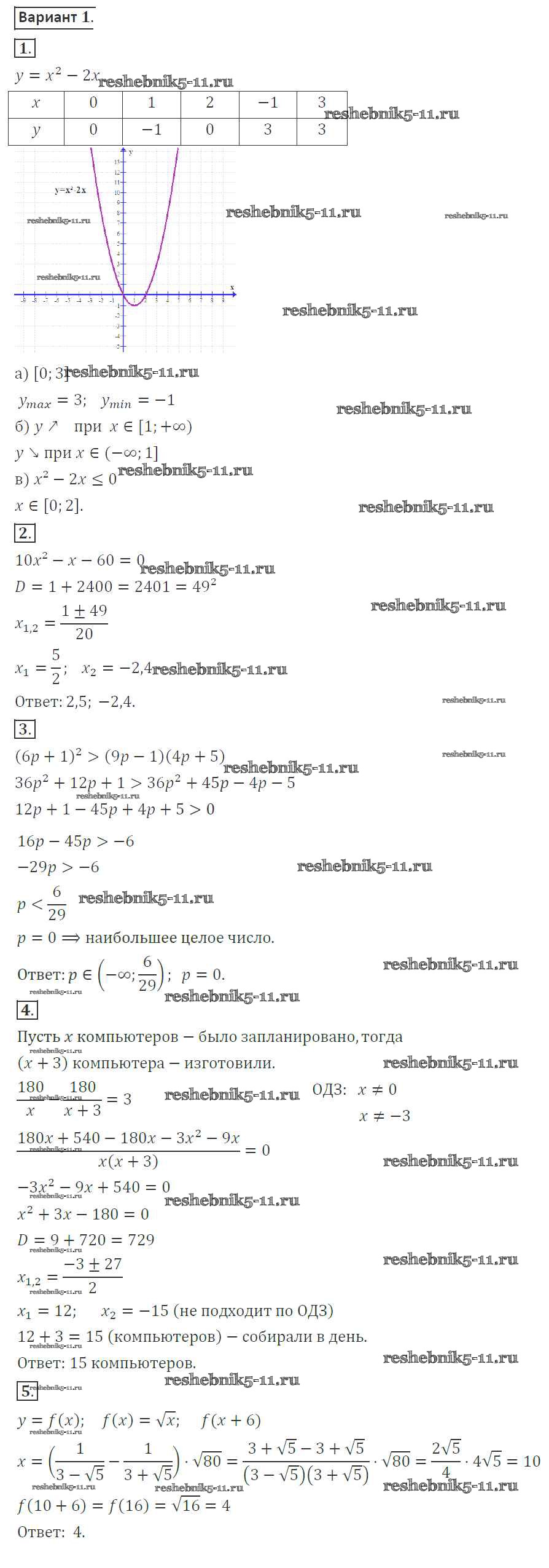 Готовая домашняя работа с ответами по Алгебре за 8 класс Александрова Контрольные работы УМК Базовый уровень Мнемозина 2016 ФГОС - Итоговые контрольные работы. Варианты 1