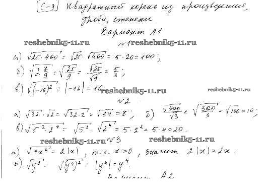 Решебник / алгебра / самостоятельная работа / ср-9. вариант / 1