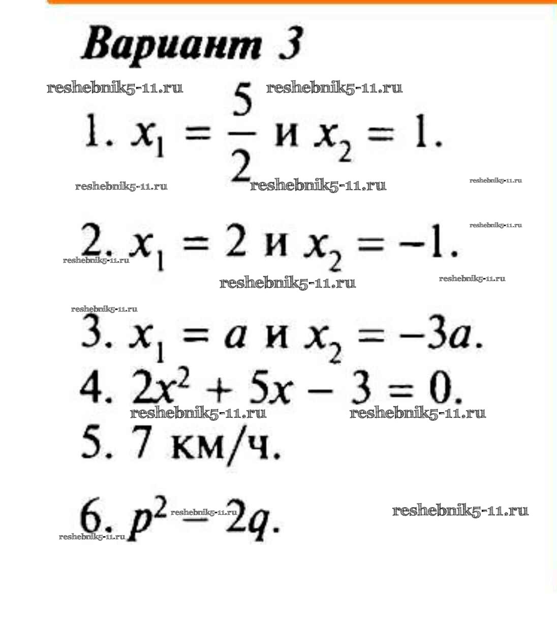 Решебник / глава 3. квадратные уравнения (контрольные работы) / Квадратные уравнения (вариант) / 3