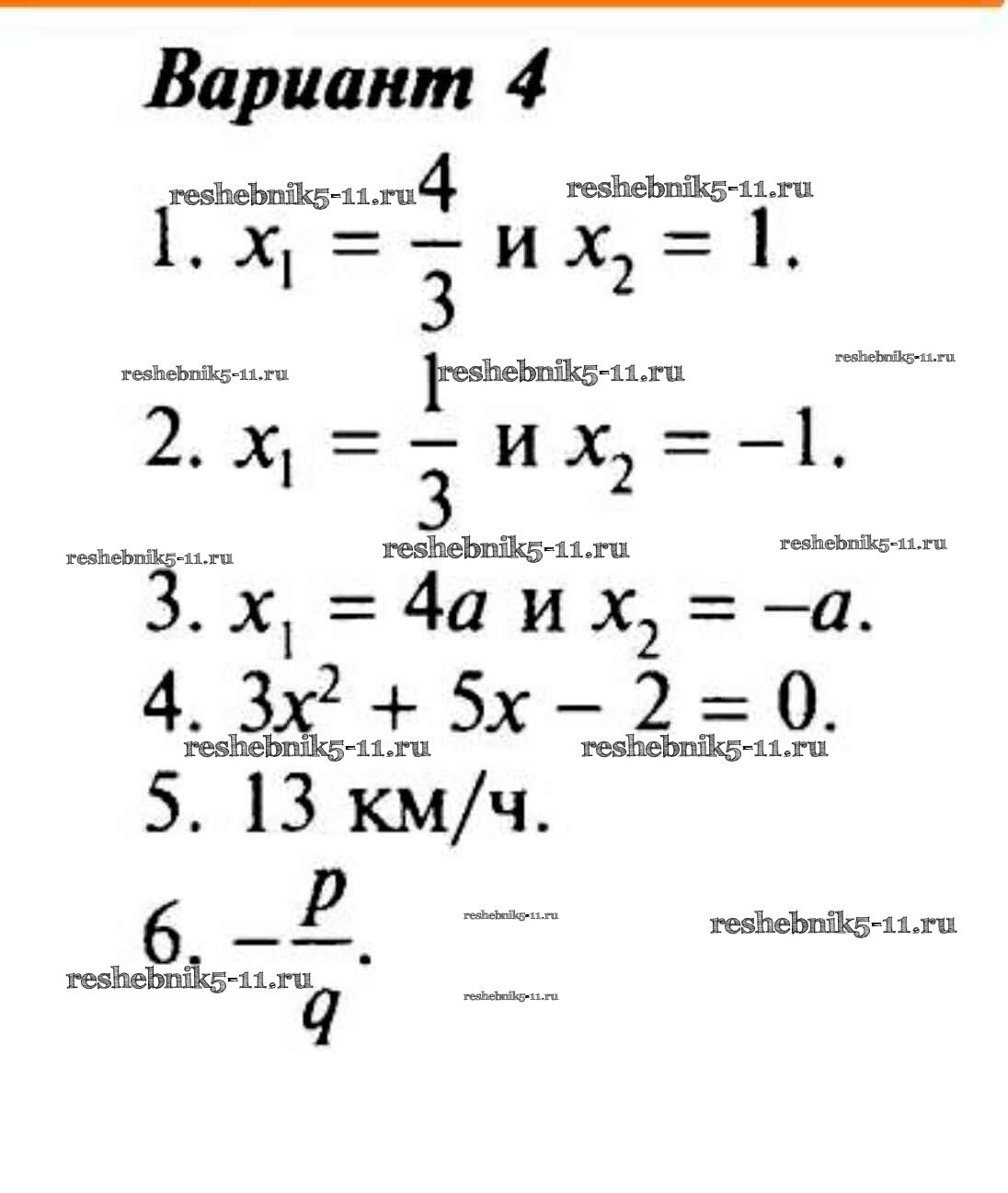 Решебник / глава 3. квадратные уравнения (контрольные работы) / Квадратные уравнения (вариант) / 4