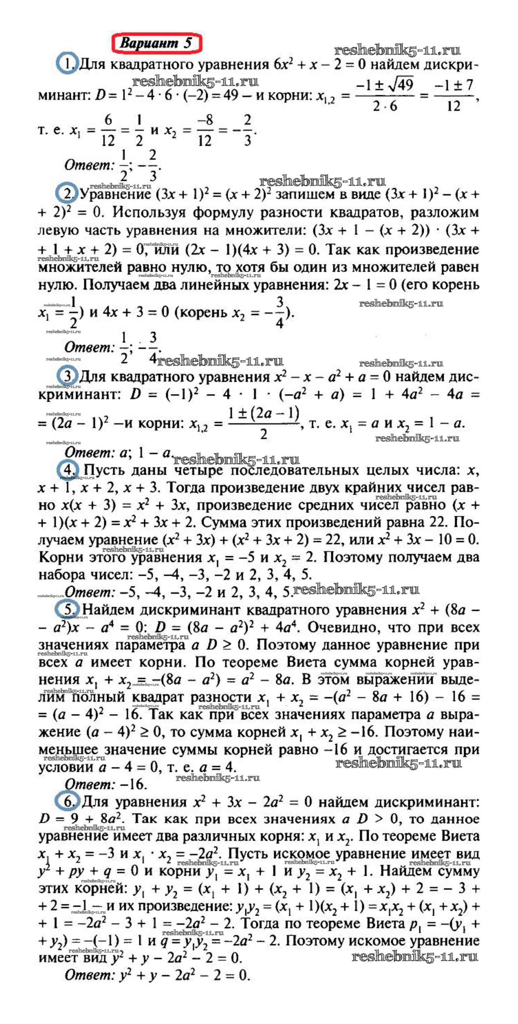Решебник / глава 3. квадратные уравнения (контрольные работы) / Квадратные уравнения (вариант) / 5