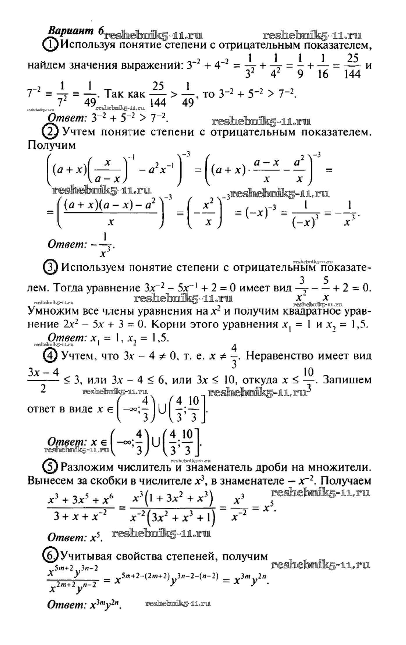 Готовая домашняя работа с ответами по Алгебре за 8 класс Рурукин Поурочные разработки УМК ВАКО 2019 ФГОС - Степень с целым показателем (Варианты) 6