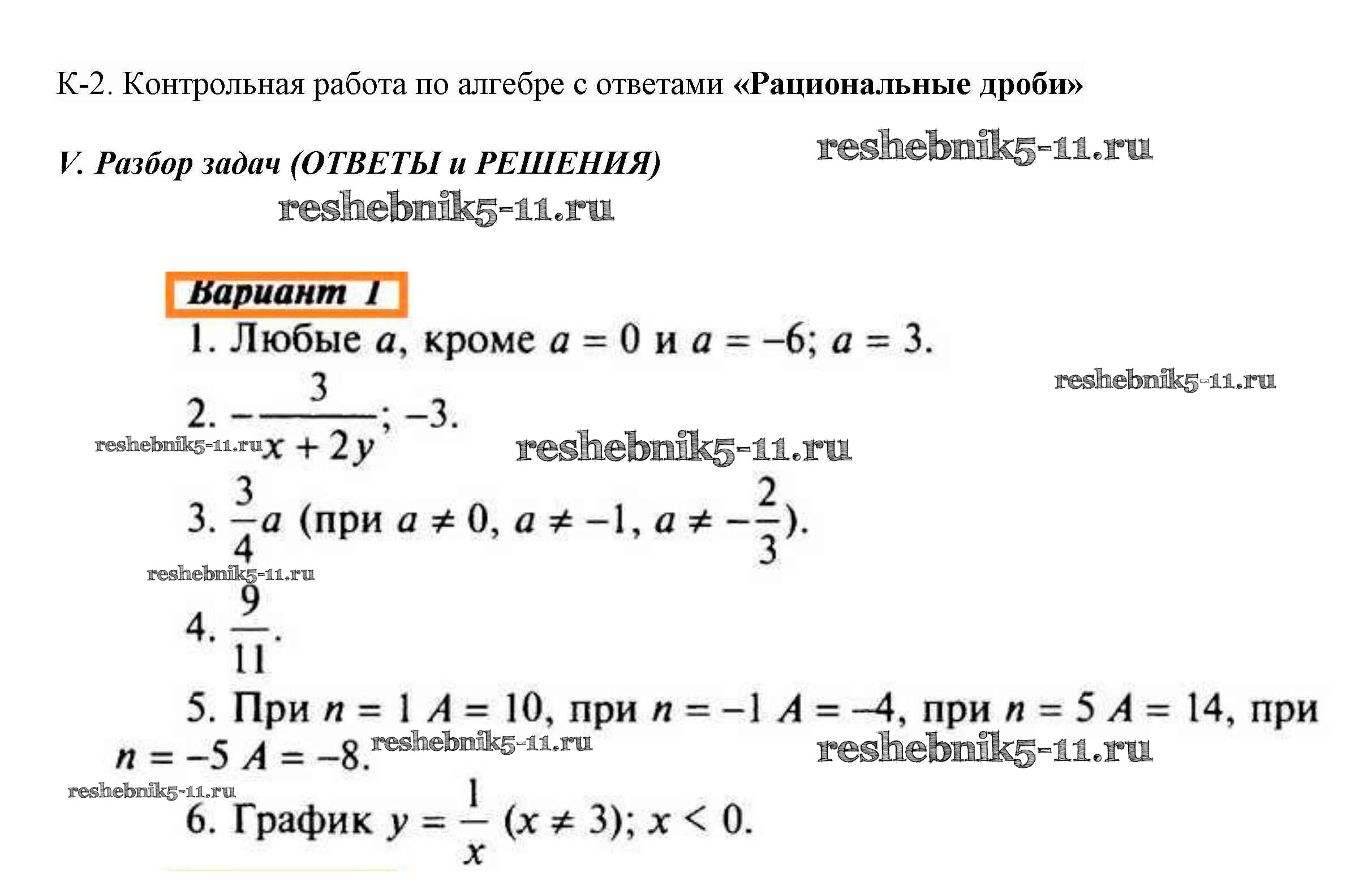 Решебник / глава 1. рациональные дроби (контрольные работы) / Рациональные дроби (вариант) / 1