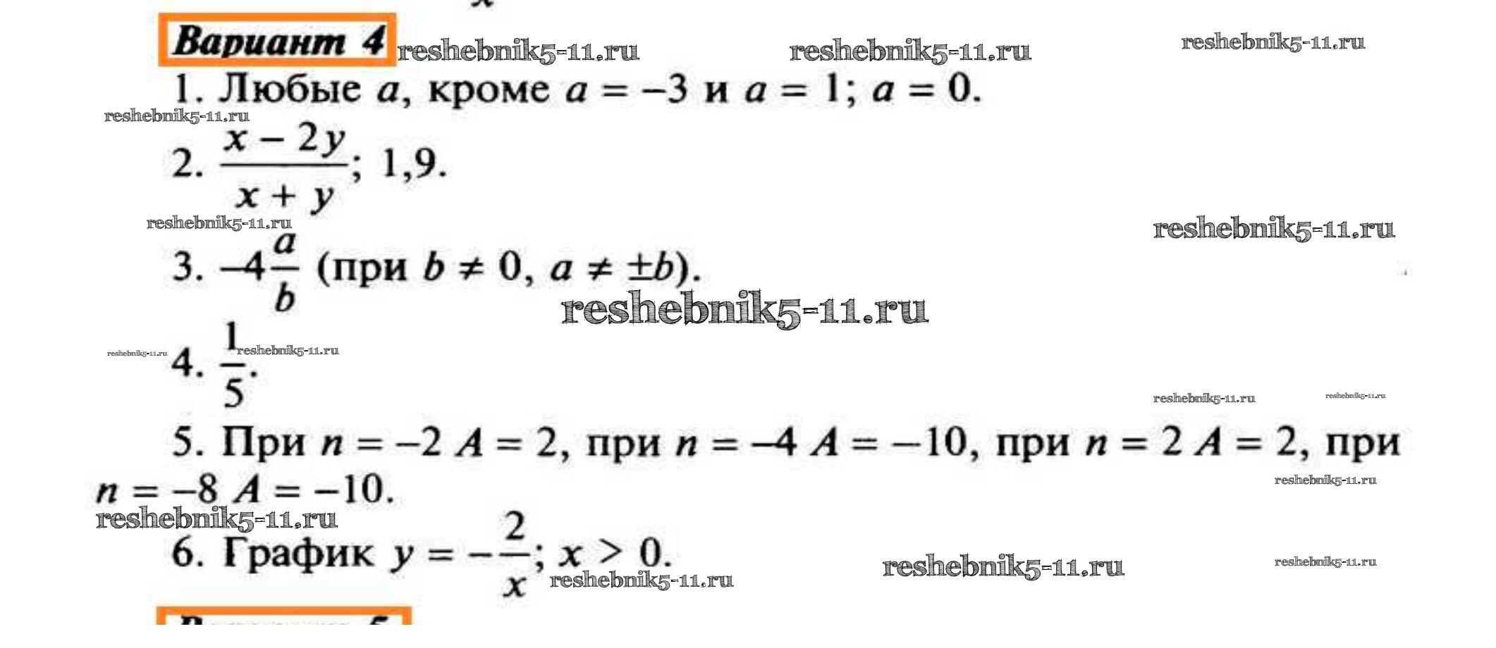 Готовая домашняя работа с ответами по Алгебре за 8 класс Рурукин Поурочные разработки УМК ВАКО 2019 ФГОС - Рациональные дроби (Варианты) 4