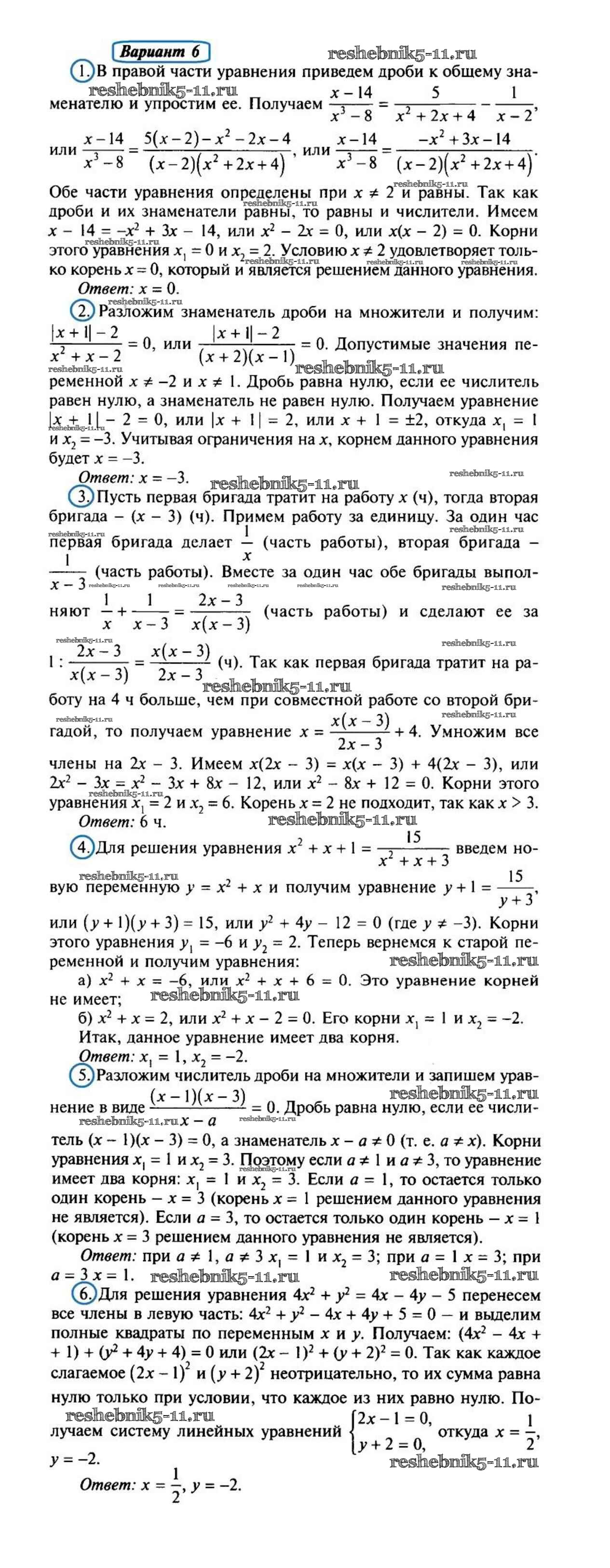 Готовая домашняя работа с ответами по Алгебре за 8 класс Рурукин Поурочные разработки УМК ВАКО 2019 ФГОС - Квадратные уравнения. Дробные рациональные уравнения (Варианты) 6